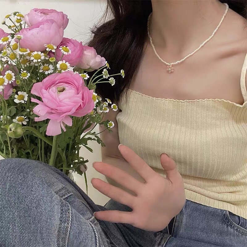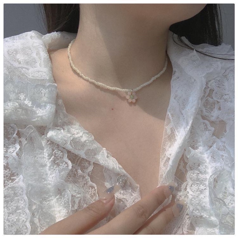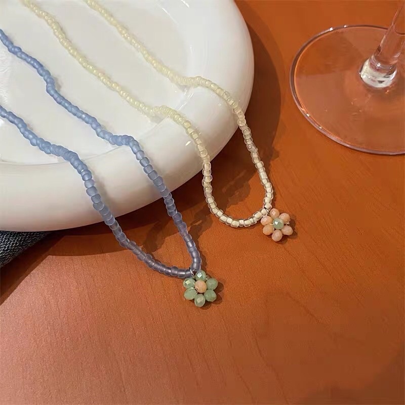 💗พร้อมส่งค่ะ💗ขาว/ฟ้าสร้อยคอลูกปัดแต่งจี้ดอกไม้น่ารัก #N0028