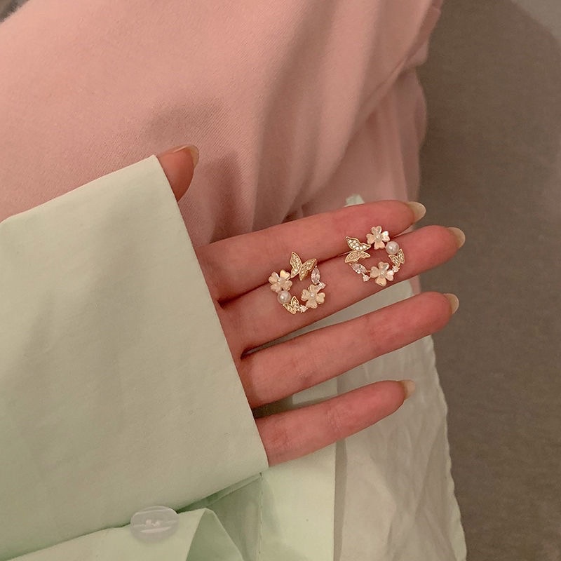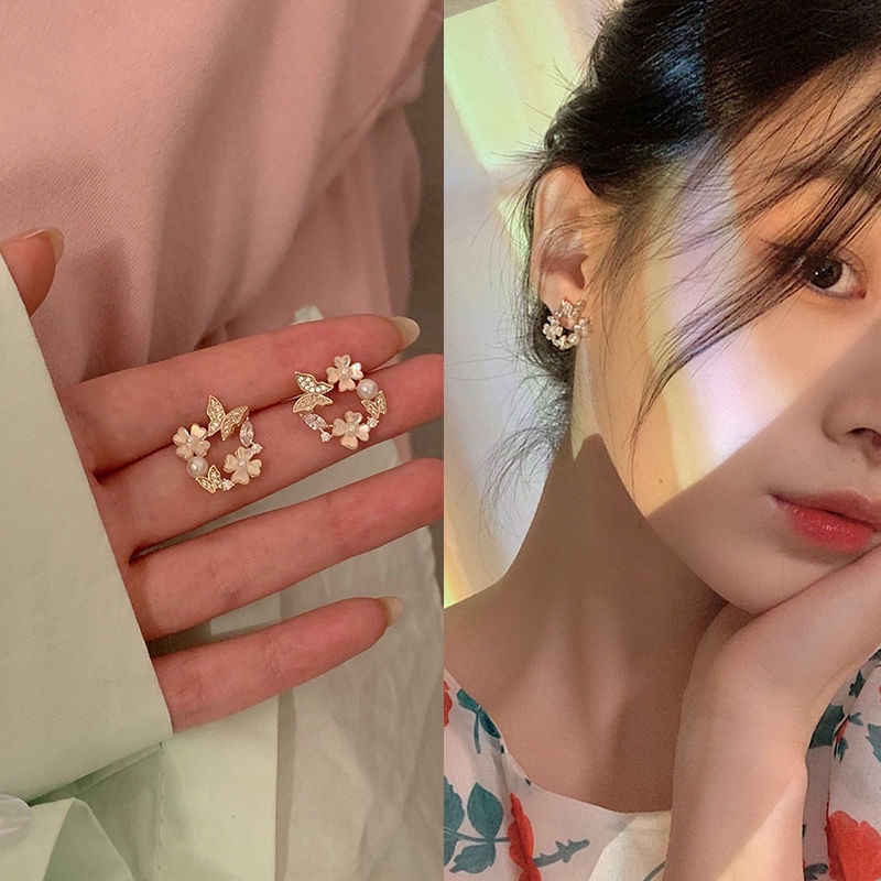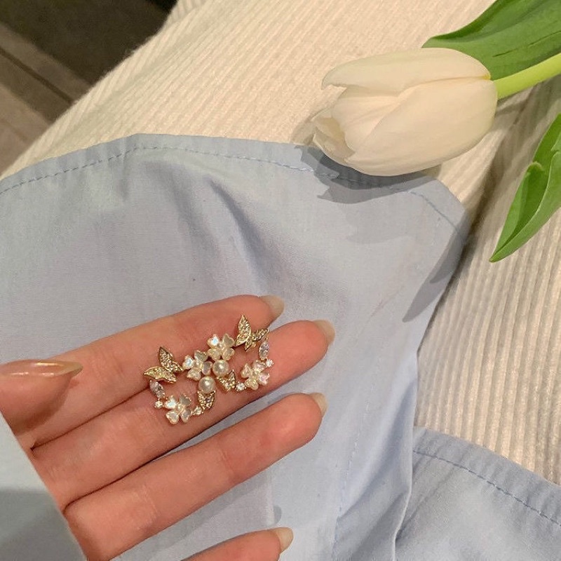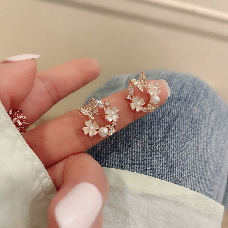 💗พร้อมส่งค่ะ💗ต่างหูแต่งผีเสื้อและดอกไม้ก้านเงิน92.5% #E0009