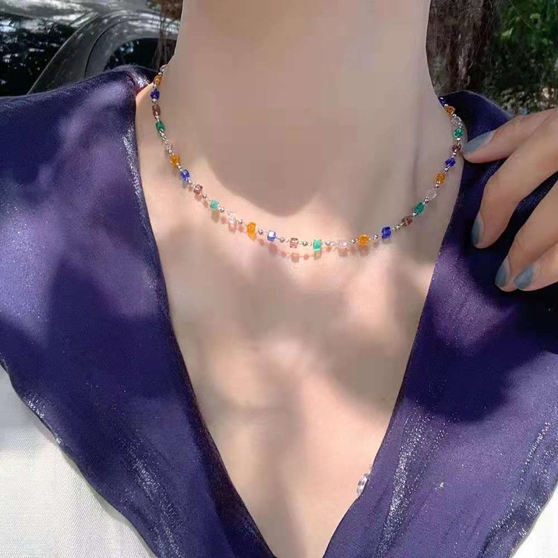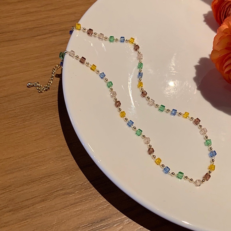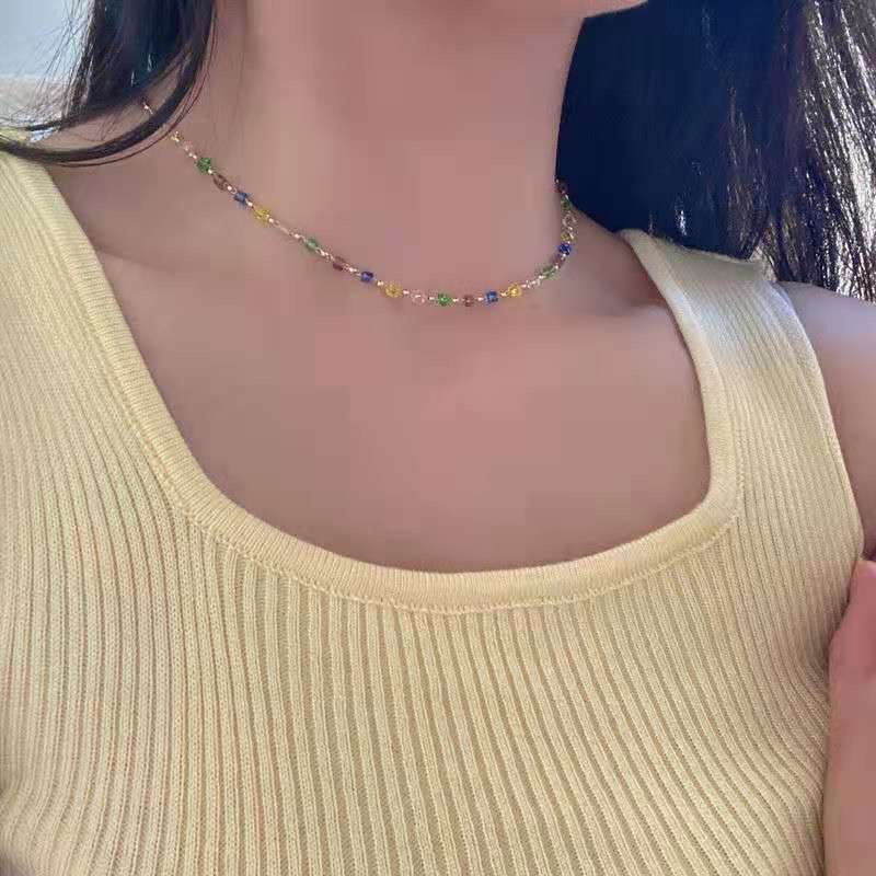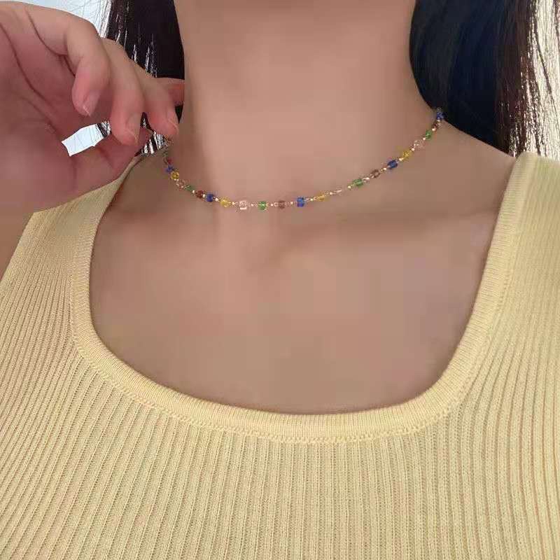 💗พร้อมส่งค่ะ💗สร้อยคอลูกปัดหลากสีแต่งสีทองสวยๆ #N0007