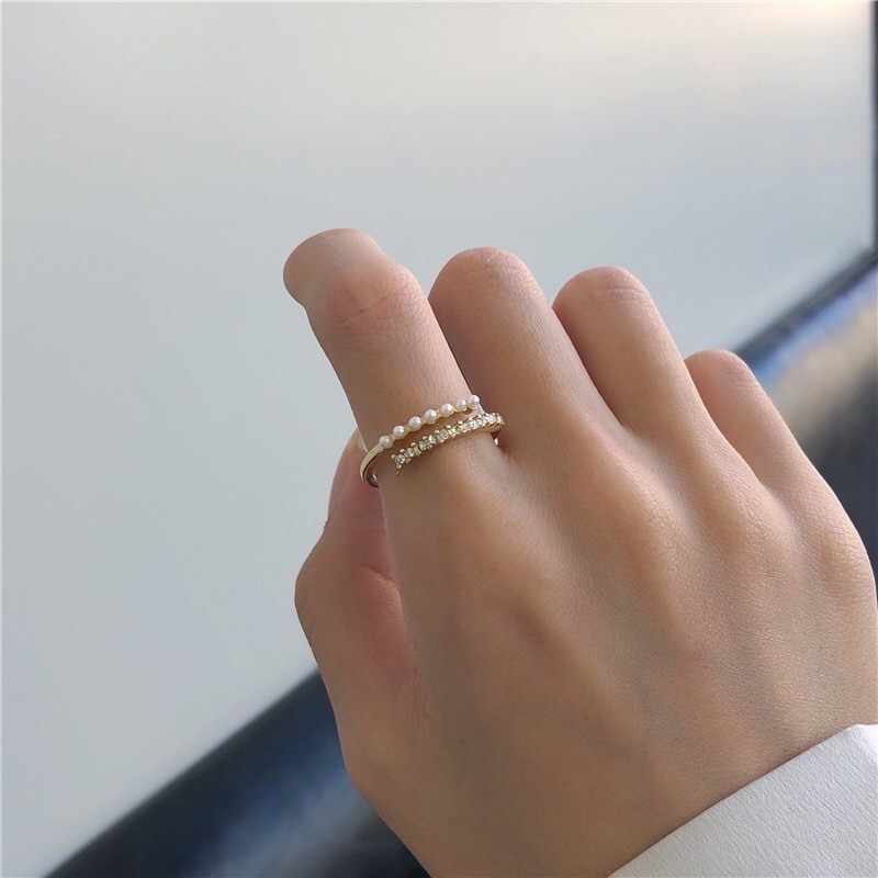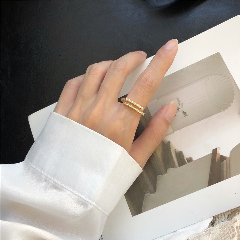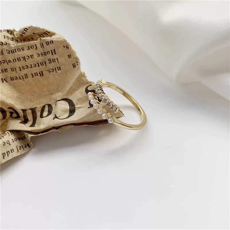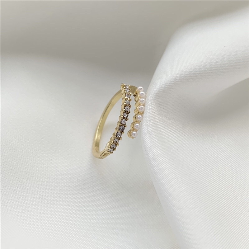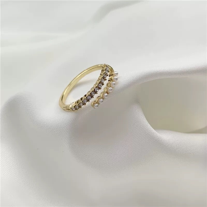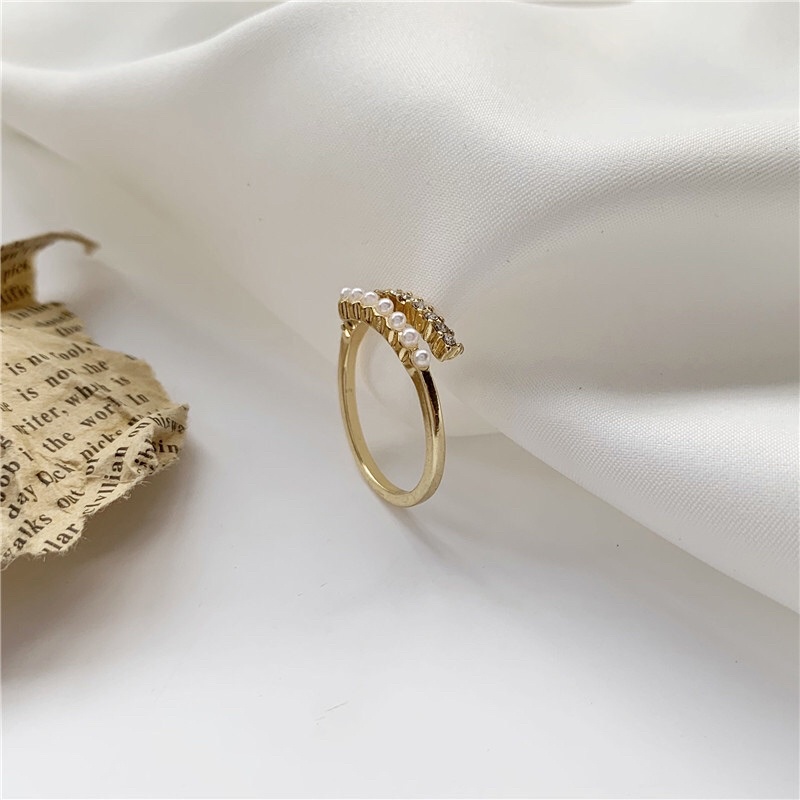 💗พร้อมส่งค่ะ💗แหวนแต่งเพชรและมุกเรียงดูแพงตัววงสีทอง