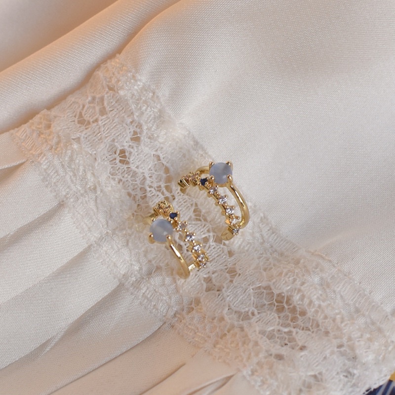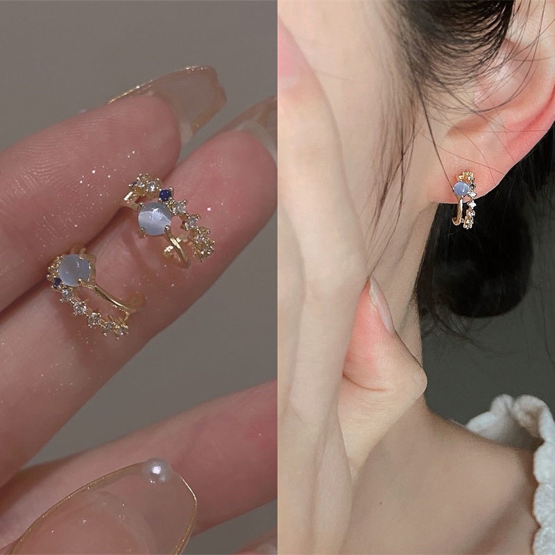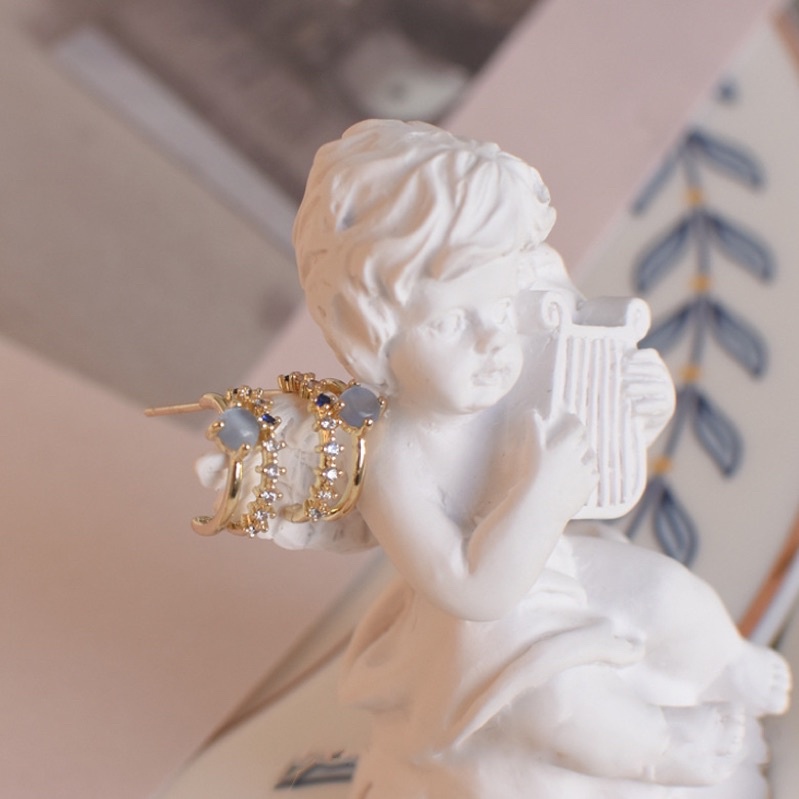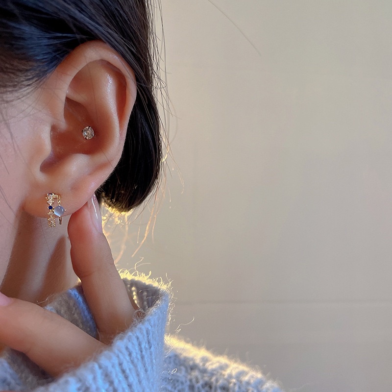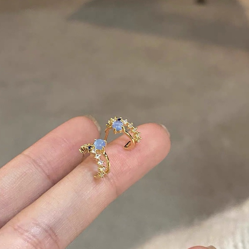 💗พร้อมส่งค่ะ💗ต่างหูแต่งพลอยสีขาวฟ้านำ้เงินน่ารักมากๆ #E0041