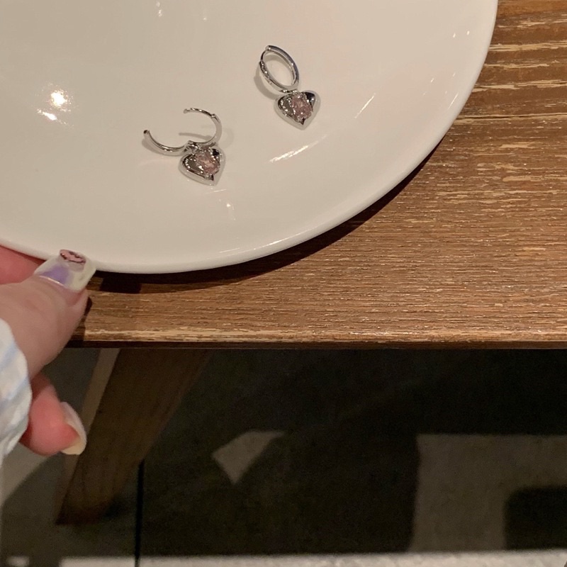 💗พร้อมส่งค่ะ💗ต่างหูห่วงสีเงินจี้หัวใจแต่งพลอยชมพูน่ารักสุดๆ #E0005