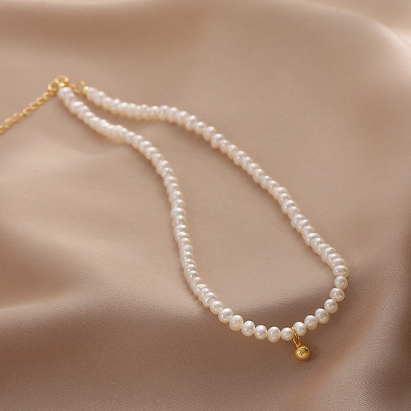 💗พร้อมส่งค่ะ💗สร้อยคอมุกแต่งจี้วงกลมสีทอง #N0055