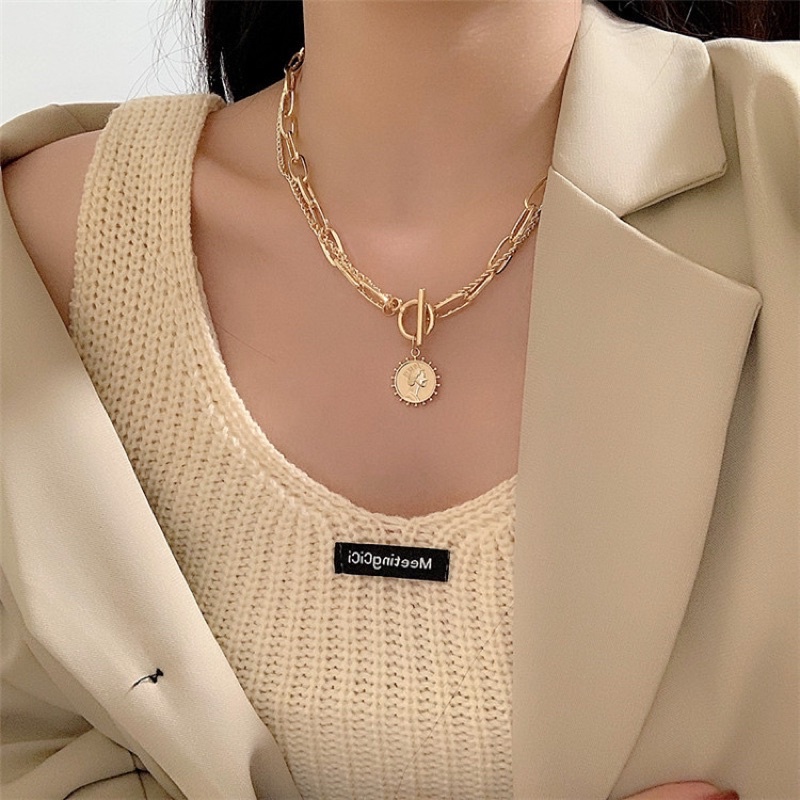 💗พร้อมส่งค่ะ💗สร้อยคอสุ่มโซ่แต่งจี้วงกลมสีทอง #N0032
