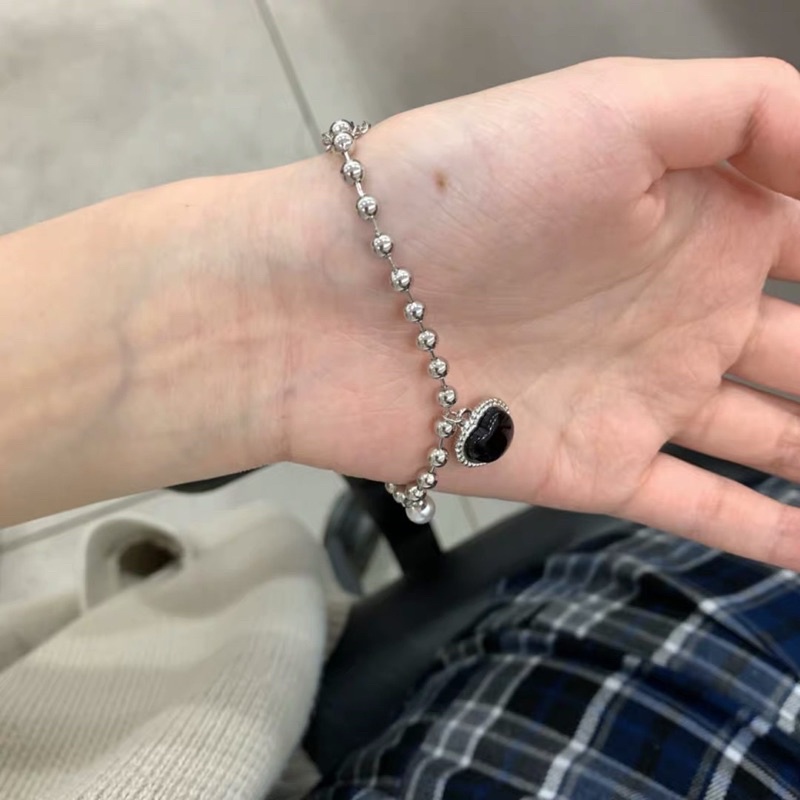 💗พร้อมส่งค่ะ💗สร้อยข้อมือกำไลข้อมือแต่งจี้หัวใจดำและมุก #H0004