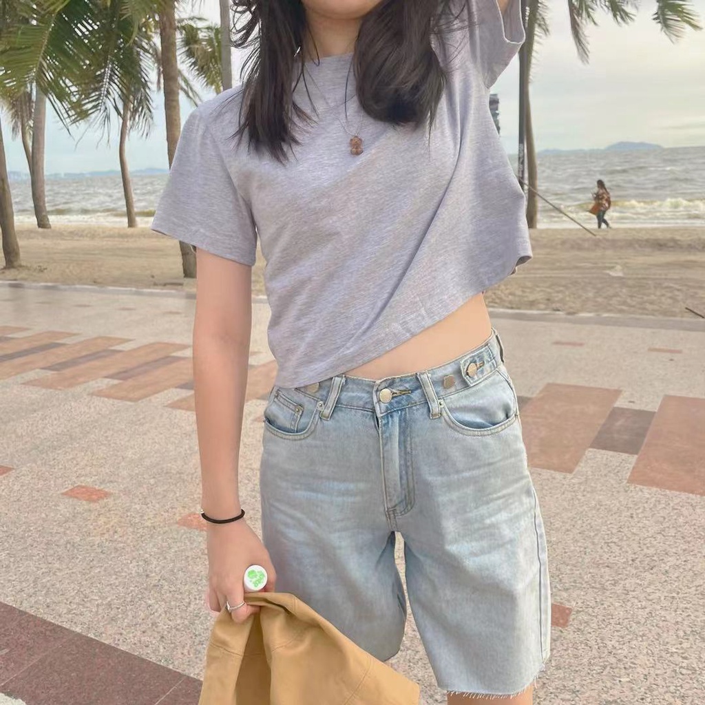 Oninaka เสื้อสีพื้นเอวลอย แมทเข้ากับทุกชุด เสื้อยืด