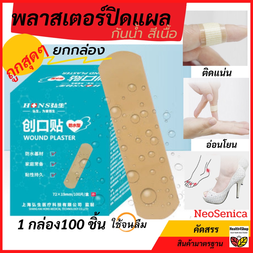 ✳️P4💦โค้ดลด-ถูกสุด🔥 พลาสเตอร์ปิดแผล กันน้ำ สีเนื้อ กลืนสีผิว 20 และ 100 แผ่น/กล่อง พาสเตอร์ปิดแผล ทำแผล มีดบาด ติดแผล