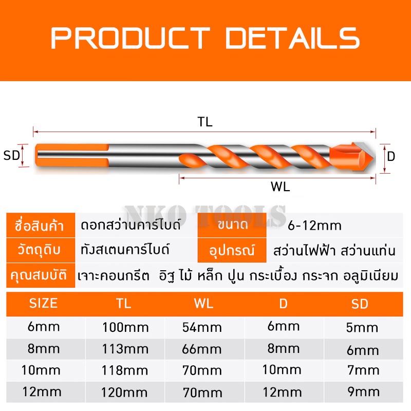 NKO ดอกสว่าน ชุดดอกสว่าน อเนกประสงค์ เจาะไม้ เจาะปูน เจาะกระเบื้อง เจาะอิฐ เจาะหินอ่อน อย่างดี ทนนาน
