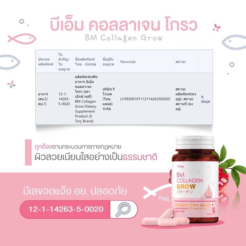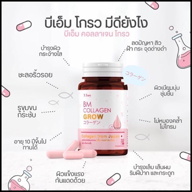 🌸 แท้💯% BM Collagen Glow (บีเอ็ม คอลลาเจน โกรว) คอลลาเจนผิวขาว ผิวกระจ่างใส บำรุงผิวพรรณ🌸 bm collagen plus