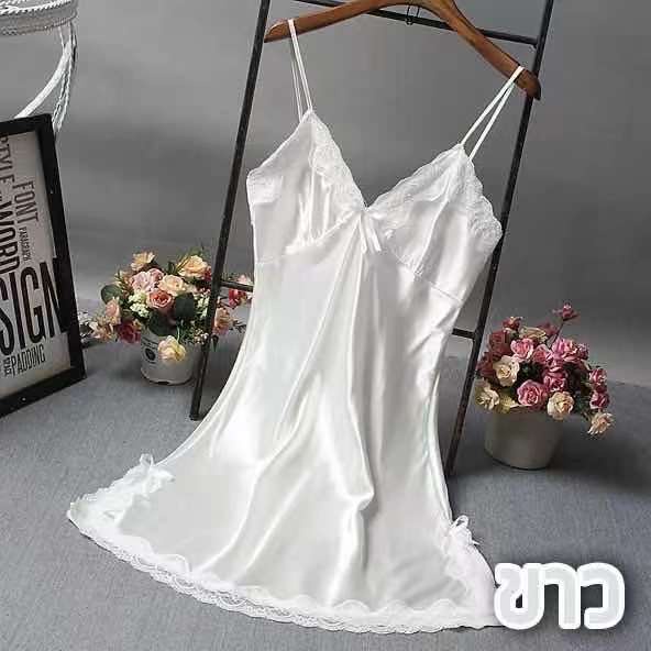 "50MIDNIGHT" ลด 50% 🌈MW010 ชุดนอนไม่ได้นอน แบบสายเดี่ยว เดรสกระโปรง ผ้าซาติน มีให้เลือกหลายสี หนัก 80 กก ก็ใส่ได้