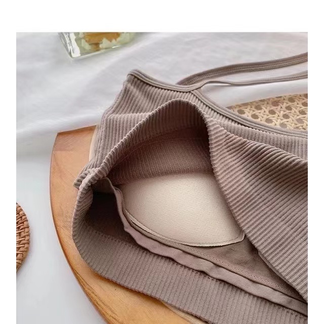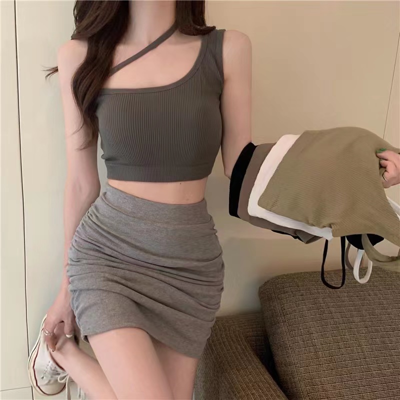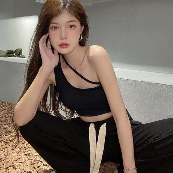 MW039 บราเสื้อครอปสายเดี่ยวแบบข้างเดียวเก๋มากเกาหลีมาก สายเดี่ยวผ้าร่อง ไหมพรม