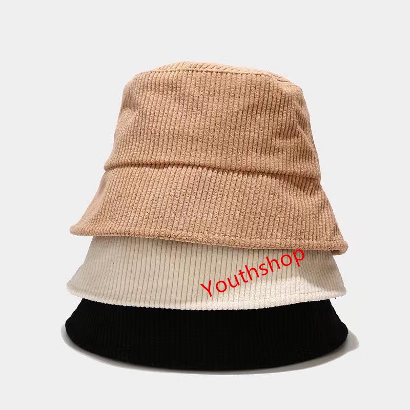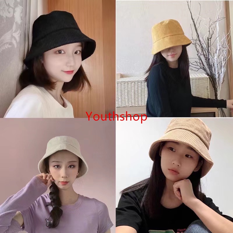 MW032 {พร้อมส่ง} หมวกบัคเก็ต ผ้าลูกฟูก สีพื้น แบบเรียบง่าย หมวก สไตล์เกาหลี สําหรับผู้หญิง และนักเรียน