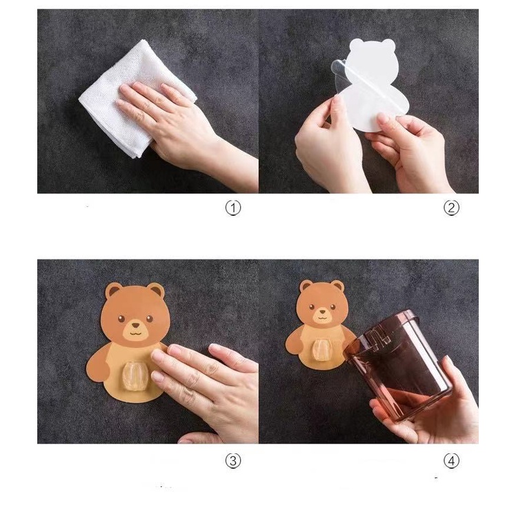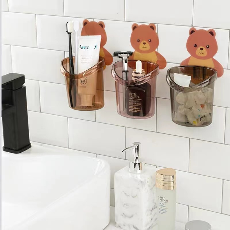 MW008 ที่วางแปรงสีฟัน ยาสีฟัน หมีน้อย ชั้นวางของในห้องน้ำติดผนัง กล่องเก็บอุปกรณ์อาบน้ำ ลายหมีน้อยน่ารัก