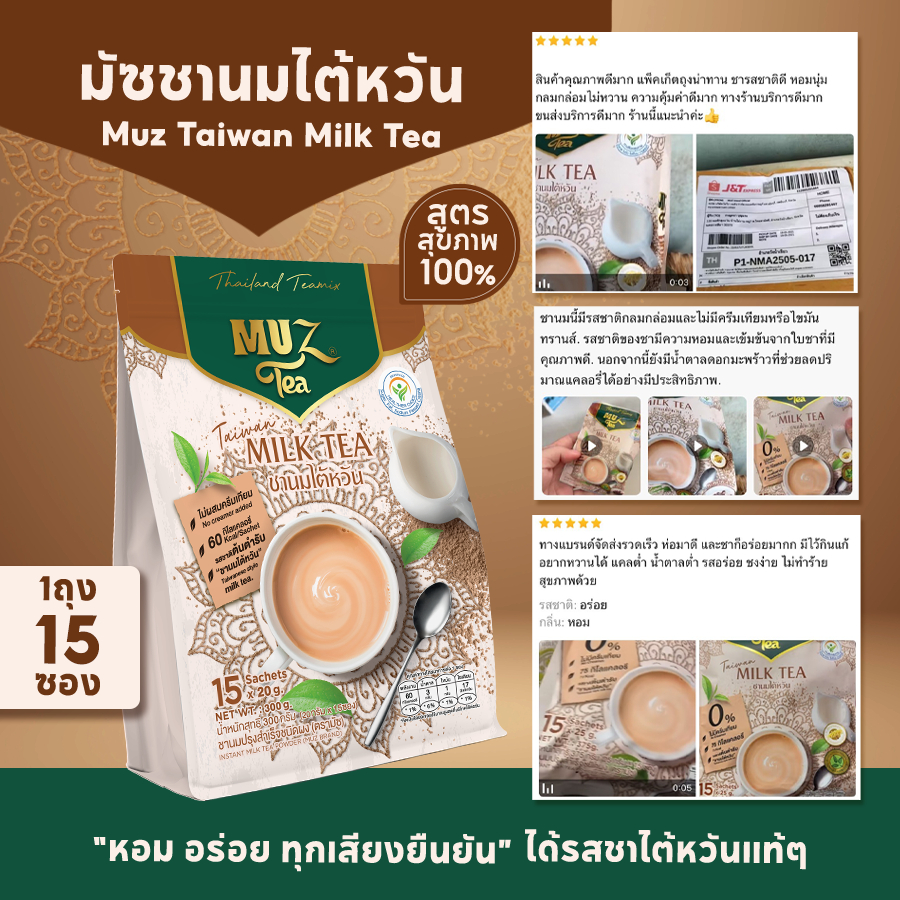 (2 ถุง) MUZ ชานมไต้หวันแท้ 2 ถุง | หอมเข้มจากชาดำ ผสมนมสกิมมิลค์ ไม่มีครีมเทียม หวานน้อย TW2