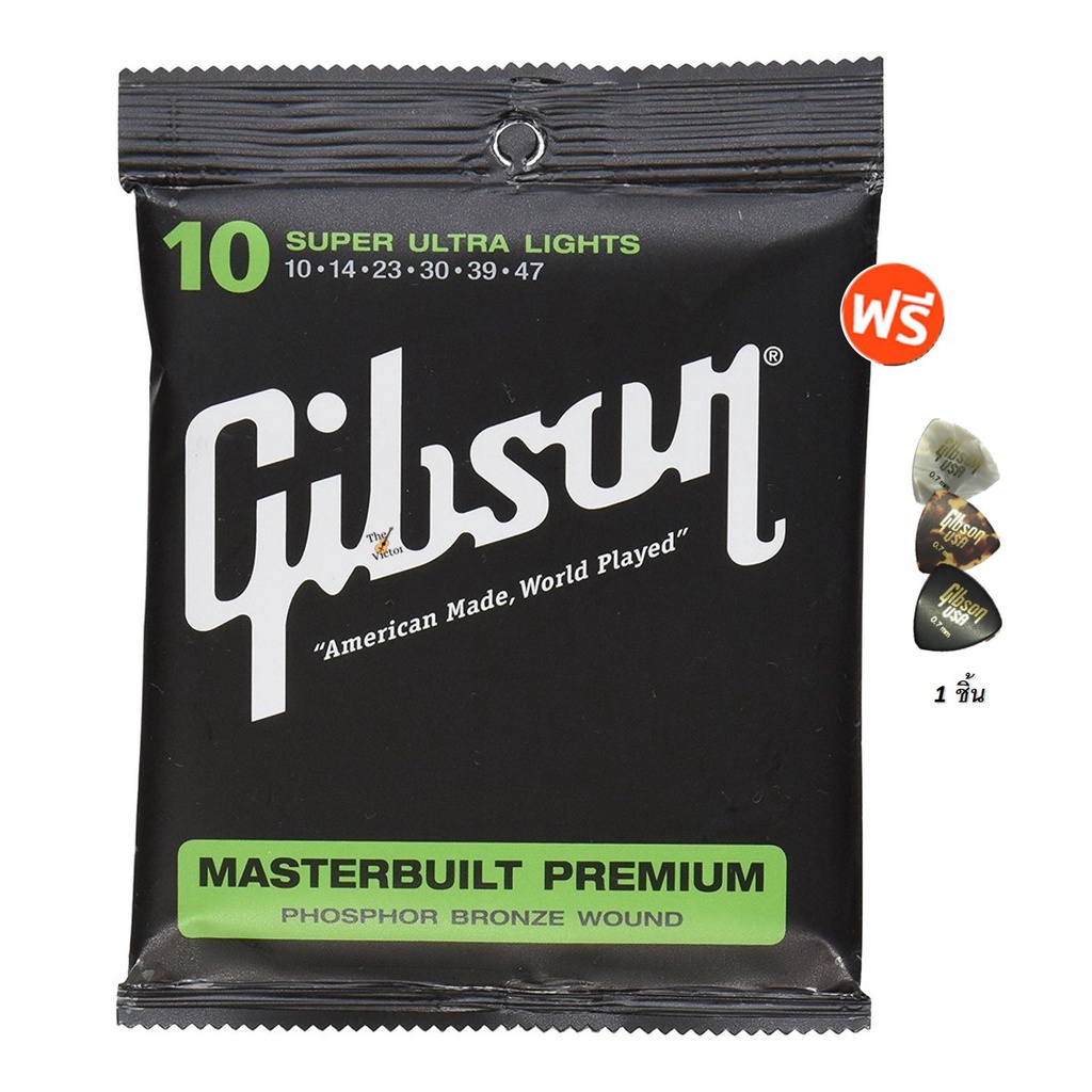 สายกีตาร์โปร่ง / ไฟฟ้า Gibson ครบชุด 6เส้น แถมปิ๊ก อย่างดีมูละค่าตัวละ 45 บาท 1ตัว