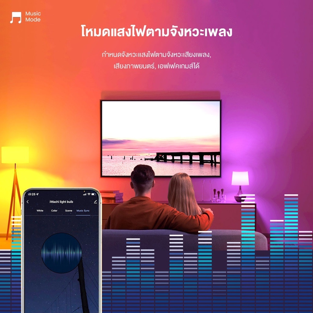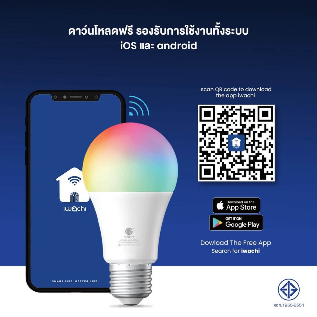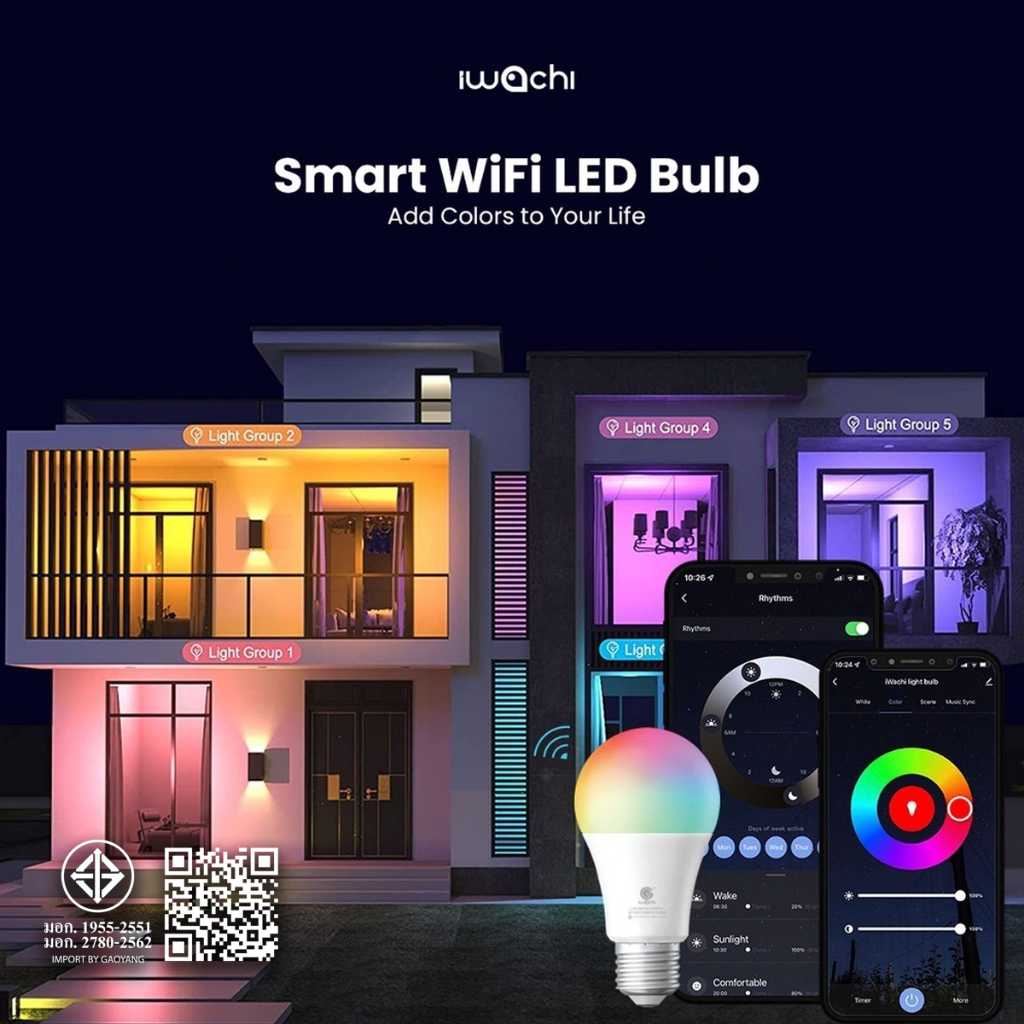 IWACHI หลอดไฟอัจฉริยะ Smart WIFI LED Light 9W เลือกโทนสี ปรับความสว่าง ตั้งเวลาได้ ควบคุมผ่านAPPได้