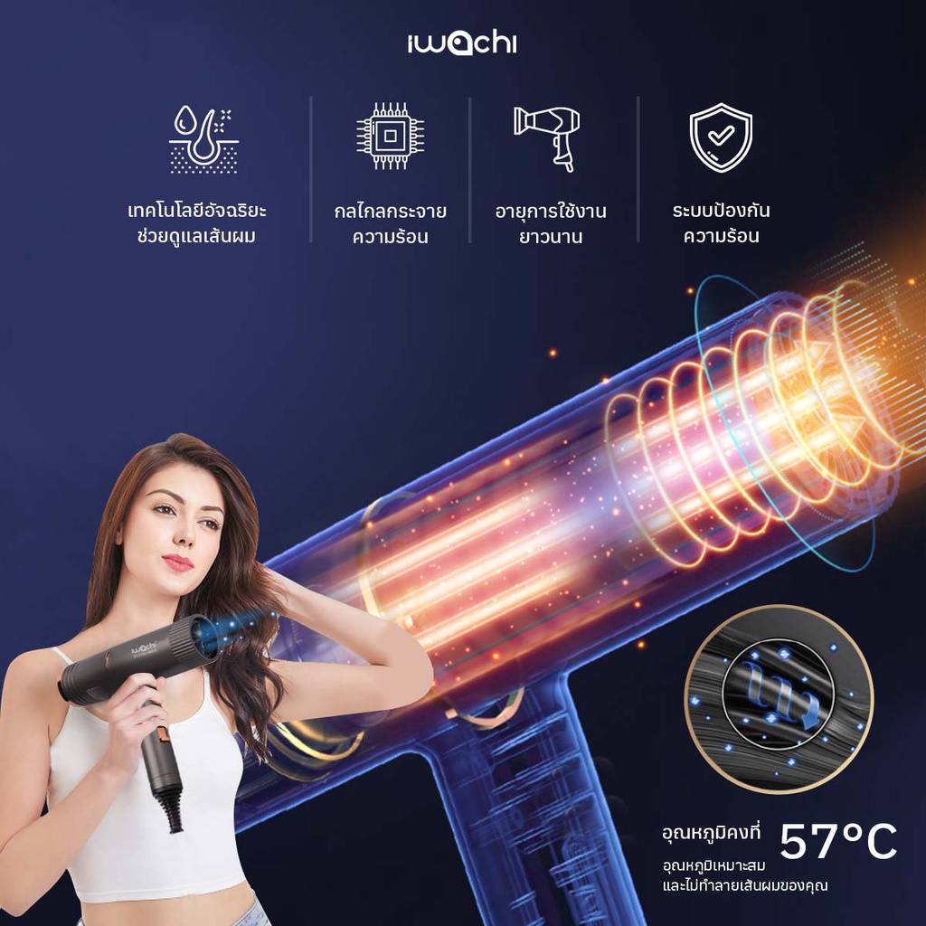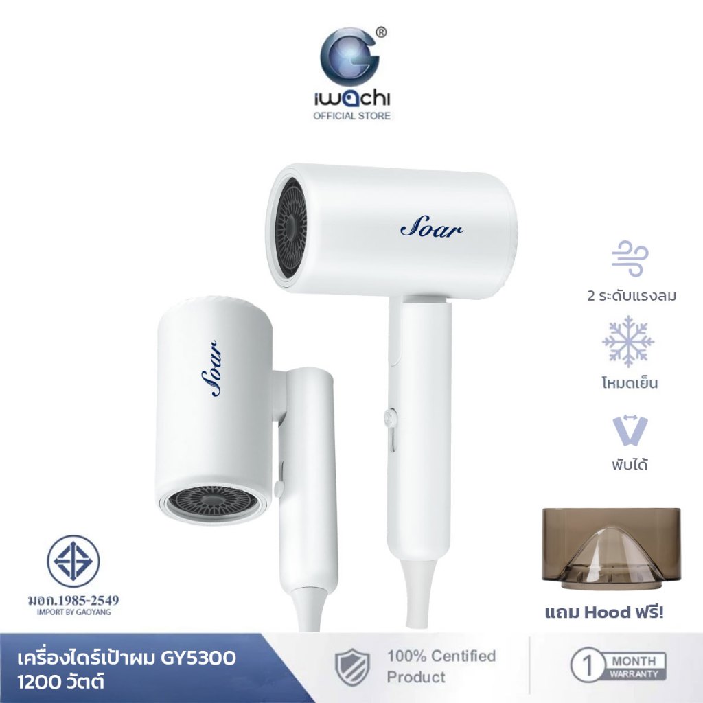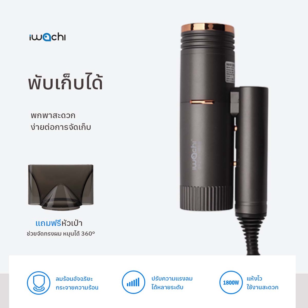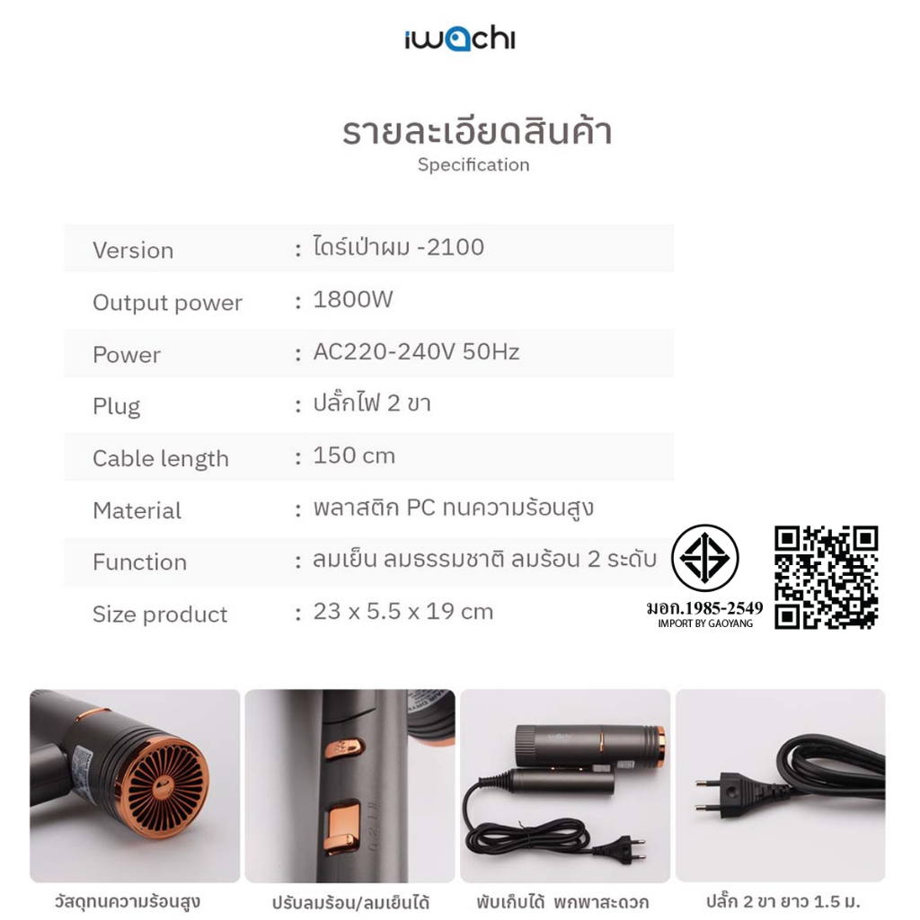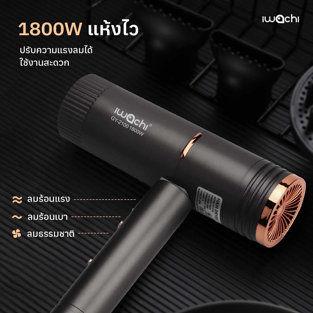 IWACHI ไดร์เป่าผม hair dryer GY-2100 1800W พับเก็บได้ พกพา สะดวก ปรับลมได้ 3 ระดับ ปรับลมร้อน/ลมธรรมชาติ/ลมเย็น
