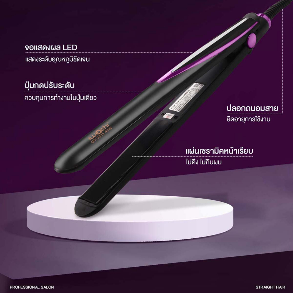 IWACHI เครื่องหนีบผม รุ่น GY-3311 40W ปรับระดับอุณหภูมิได้ 4 ระดับ ป้องกันไฟฟ้าสถิต แผ่นเซรามิกเคลือบถนอมเส้นผม