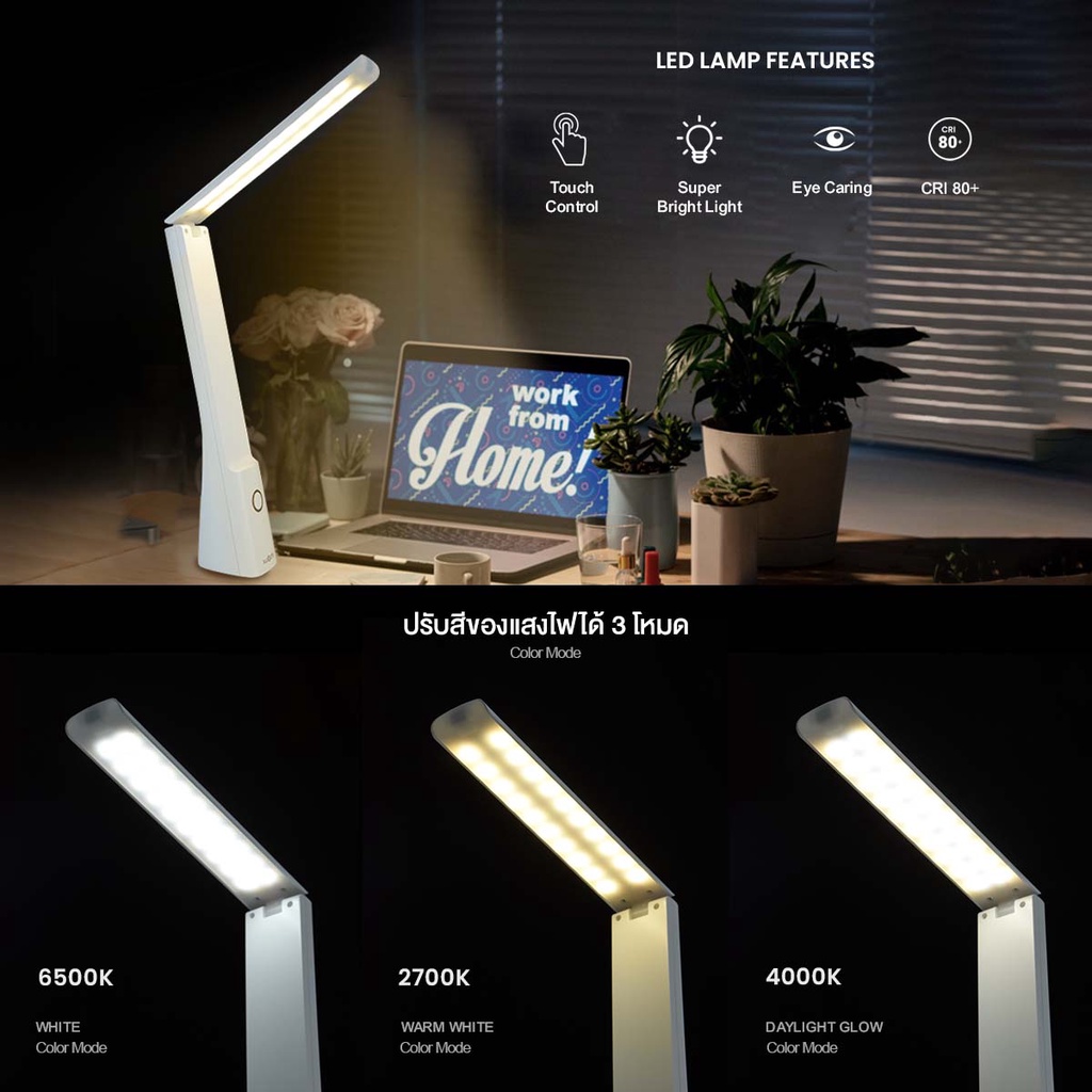 IWACHI โคมไฟตั้งโต๊ะไร้สาย แสงไฟ3in1 ปรับระด ับความสว่างได้ ชาร์จUSB พับเก็บได้ ช่วยปกป้องดวงตา