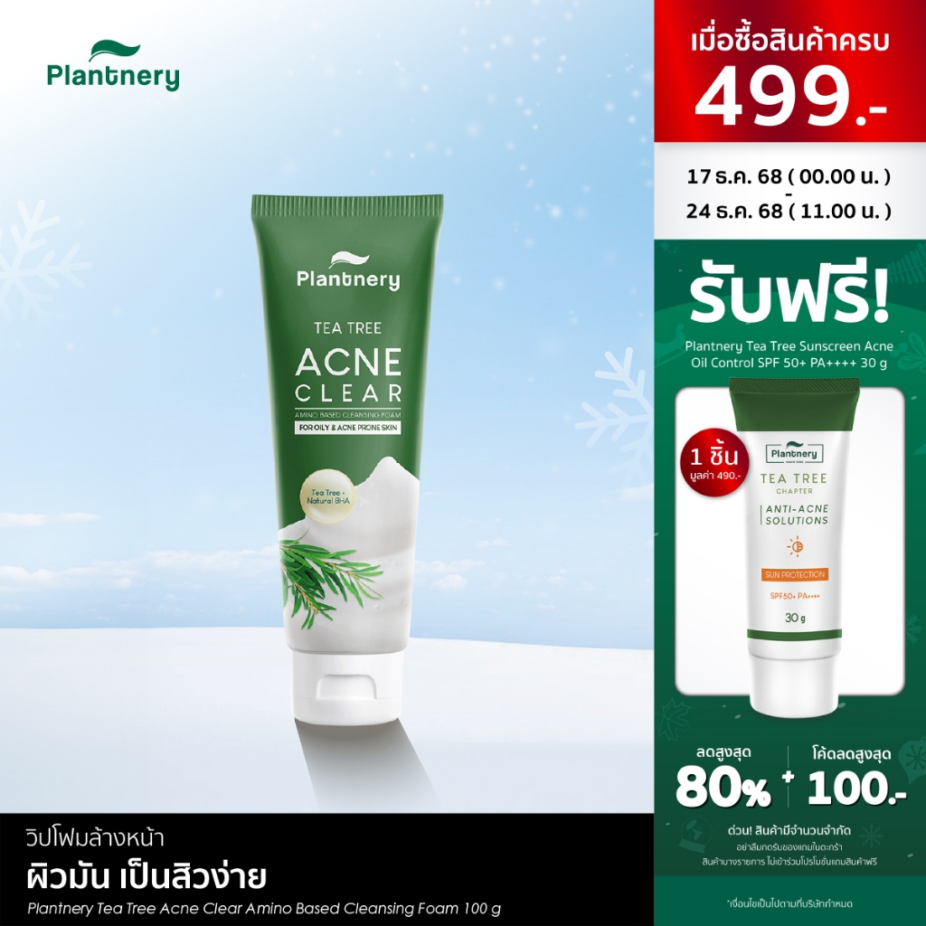 Plantnery Tea Tree Acne Clear Amino Based Cleansing Foam 100 g โฟมทำความสะอาดที ทรี สูตรจากธรรมชาติ สำหรับผิวมีปัญหาสิว