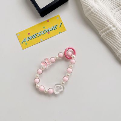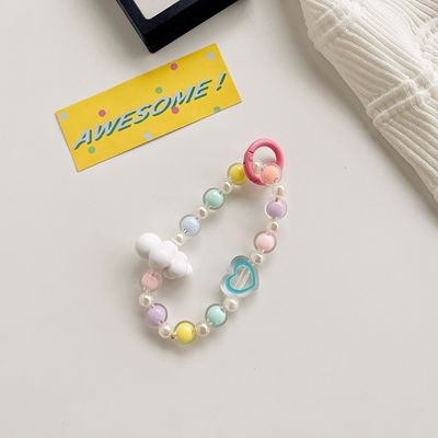 ใหม่ สายคล้องโทรศัพท์มือถือ ประดับลูกปัดอะคริลิค ลายการ์ตูนหัวใจ สีแคนดี้ แบบสร้างสรรค์