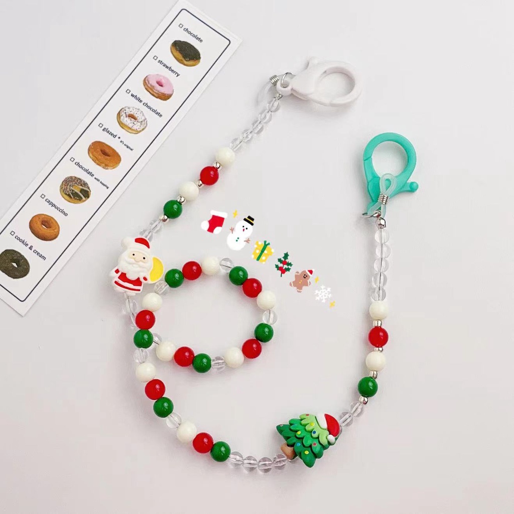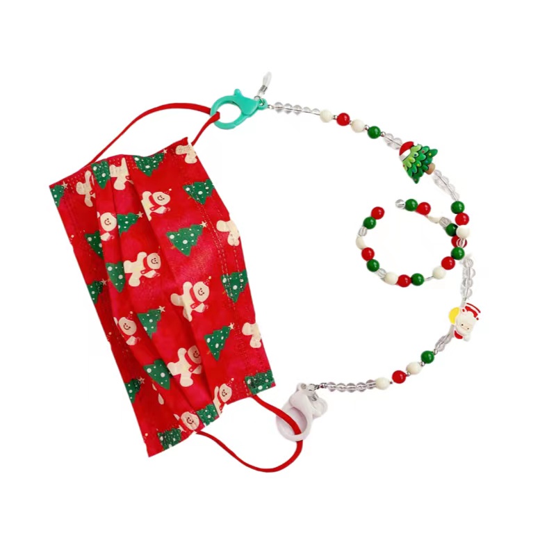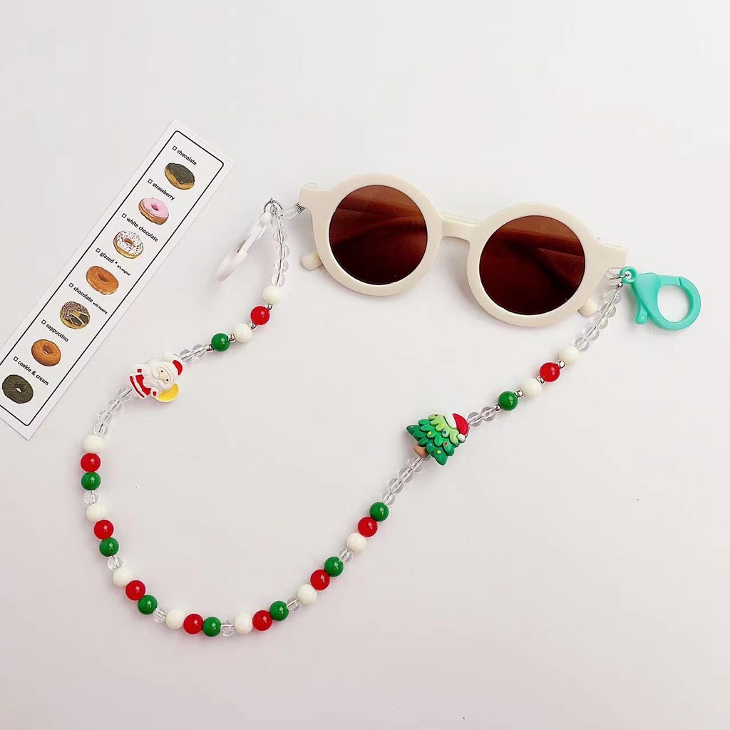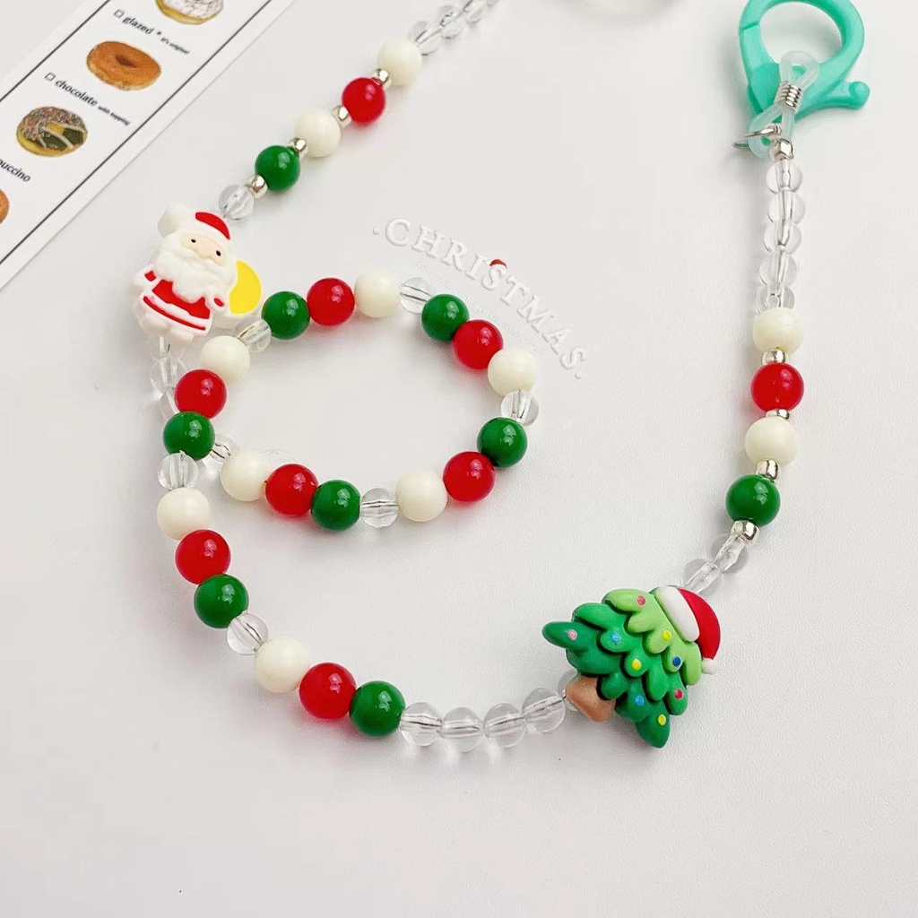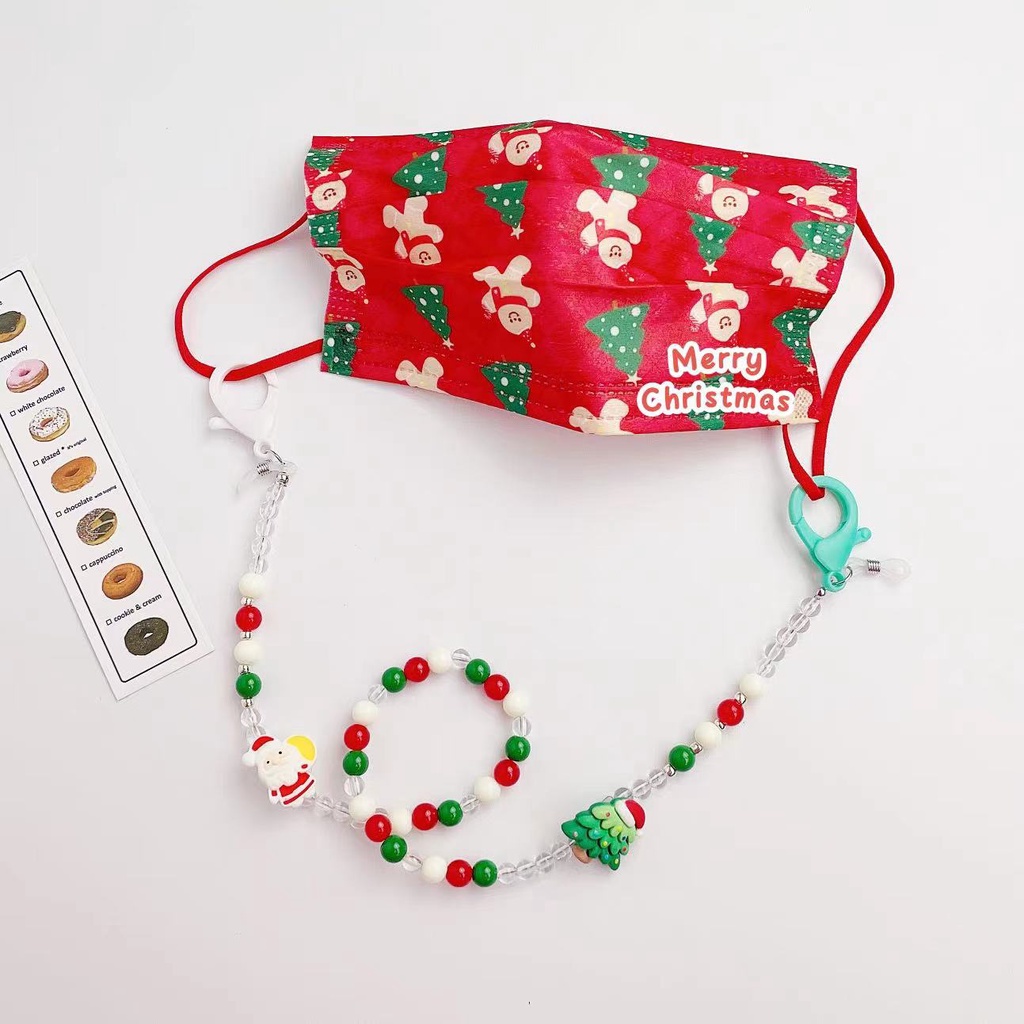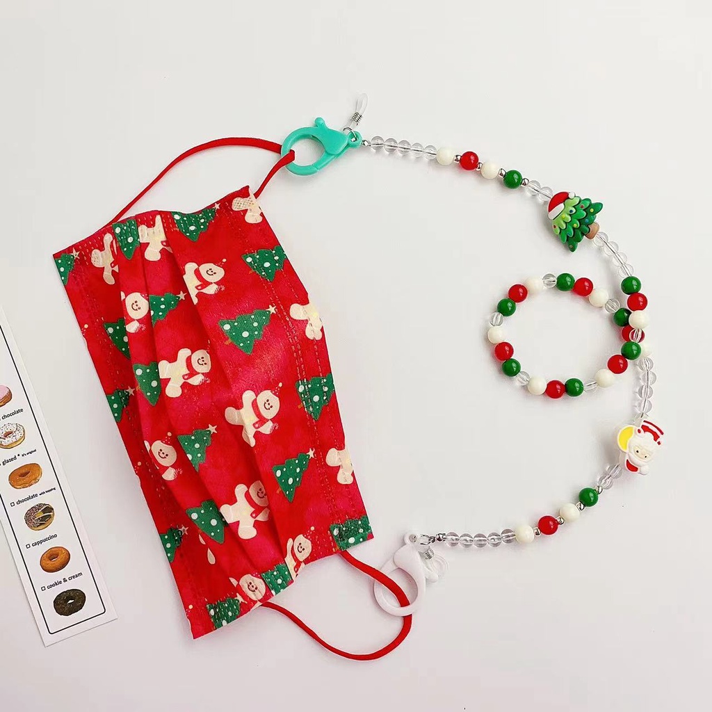สายโซ่คล้องคอ ประดับลูกปัด ลายการ์ตูนซานต้า สีแดง สีเขียว แบบเรียบง่าย สไตล์เกาหลี สําหรับคล้องแว่นตา หน้ากากอนามัย
