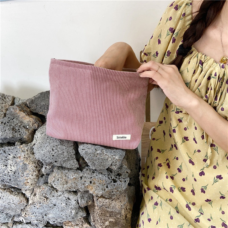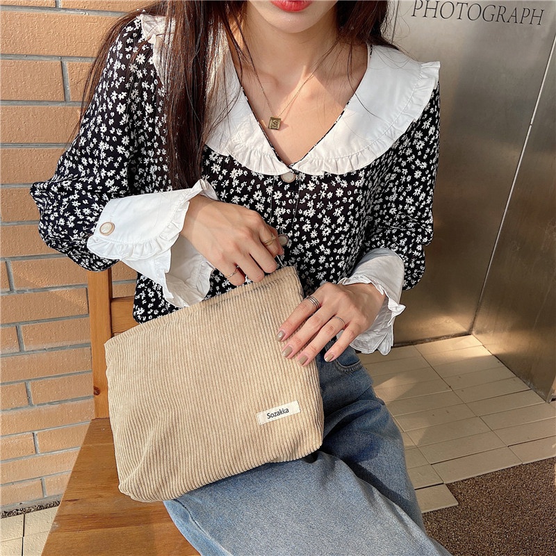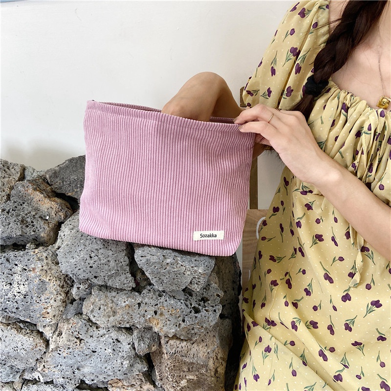 กระเป๋าเครื่องสําอาง แบบมีซิป ล้างทําความสะอาดได้ แบบเรียบง่าย แฟชั่นสําหรับผู้หญิง