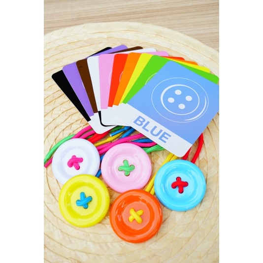 ชุดคุ้มค่า🔴 Doomi กระดุมใหญ่พิเศษ 6.3 ซม. 20 เม็ด พร้อมเชือก5เส้นและการ์ดสีเสริมทักษะการเรียนรู้เด็ก