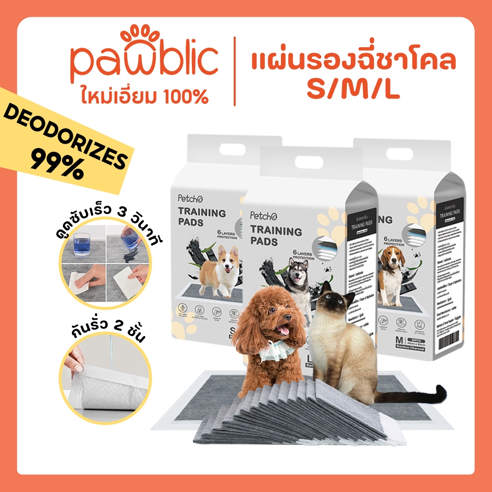 Pawblic🐶แผ่ นรองฉี่สุนัข รุ่นชาโคล แผ่นรองฉี่แมว ยถ่านหินคาร์บอน ดูดกลิ่นดี ต่อต้านแบคทีเรีย ซึมซับดี ระงับกลิ่นS M L