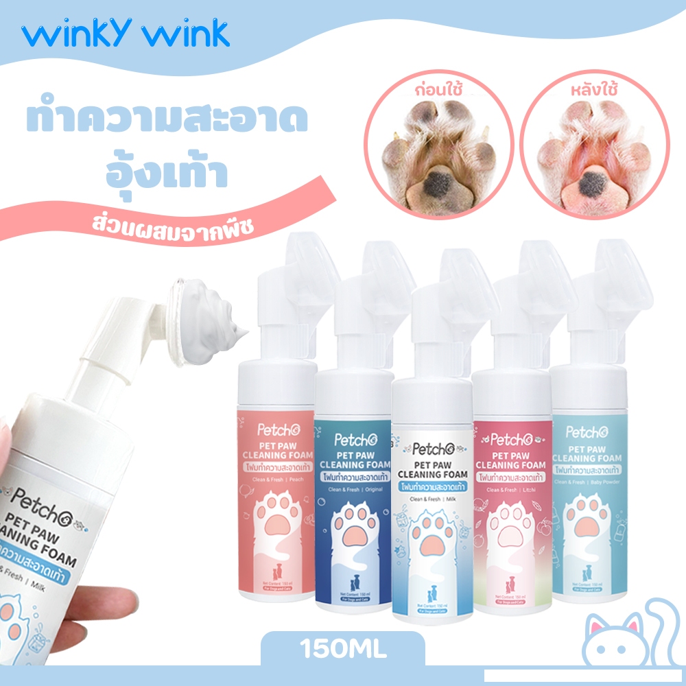 Winky Wink โฟมทำความสะอาดเท้าแมว โฟมทำความสะอาดเท้าสัตว์เลี้ยง อ่อนโยนและไม่ระคายเคือง พลังทำความสะอาดที่แข็งแกร่ง 150ml