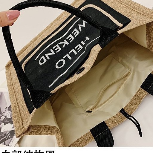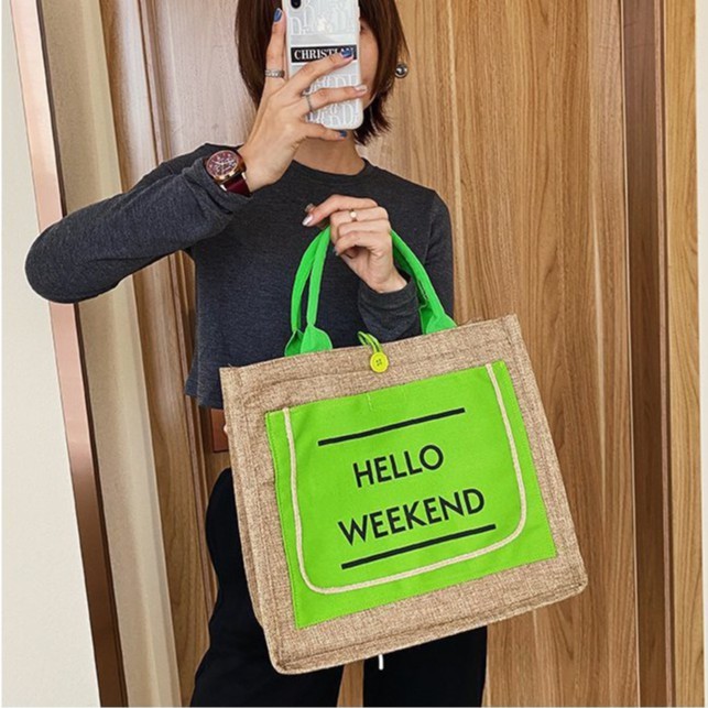 🔥(B-183)🔥กระเป๋าสาน กระเป๋าถือ HELLO WEEKEND