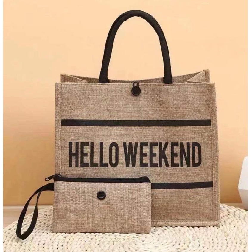 🔥(B-762)🔥กระเป๋าสาน กระเป๋าถือ 2in1 HELLO WEEKEND