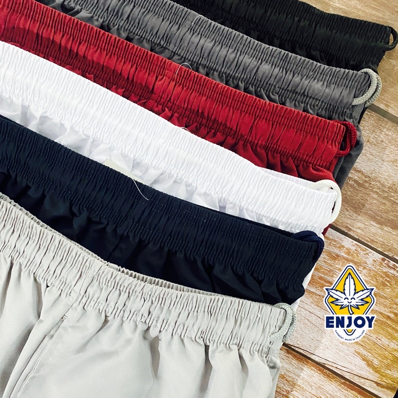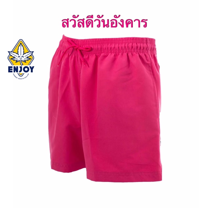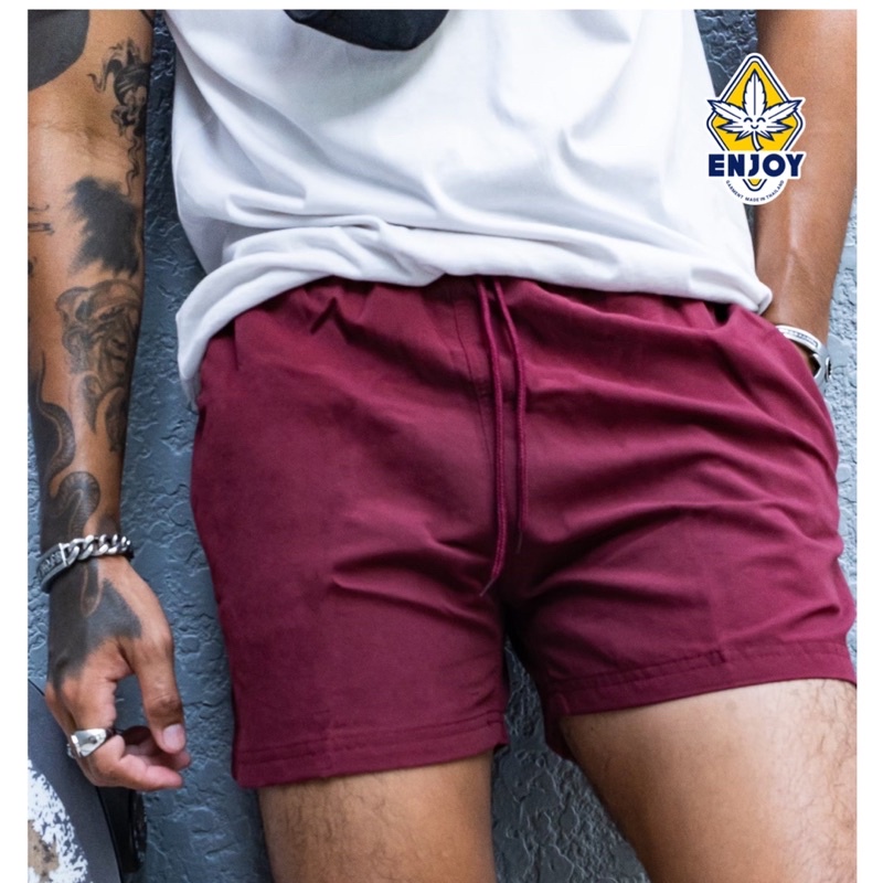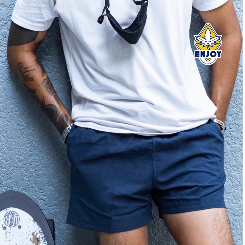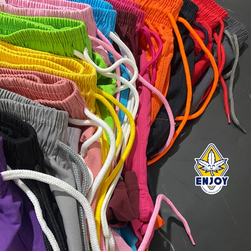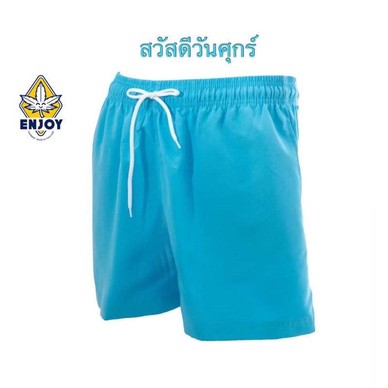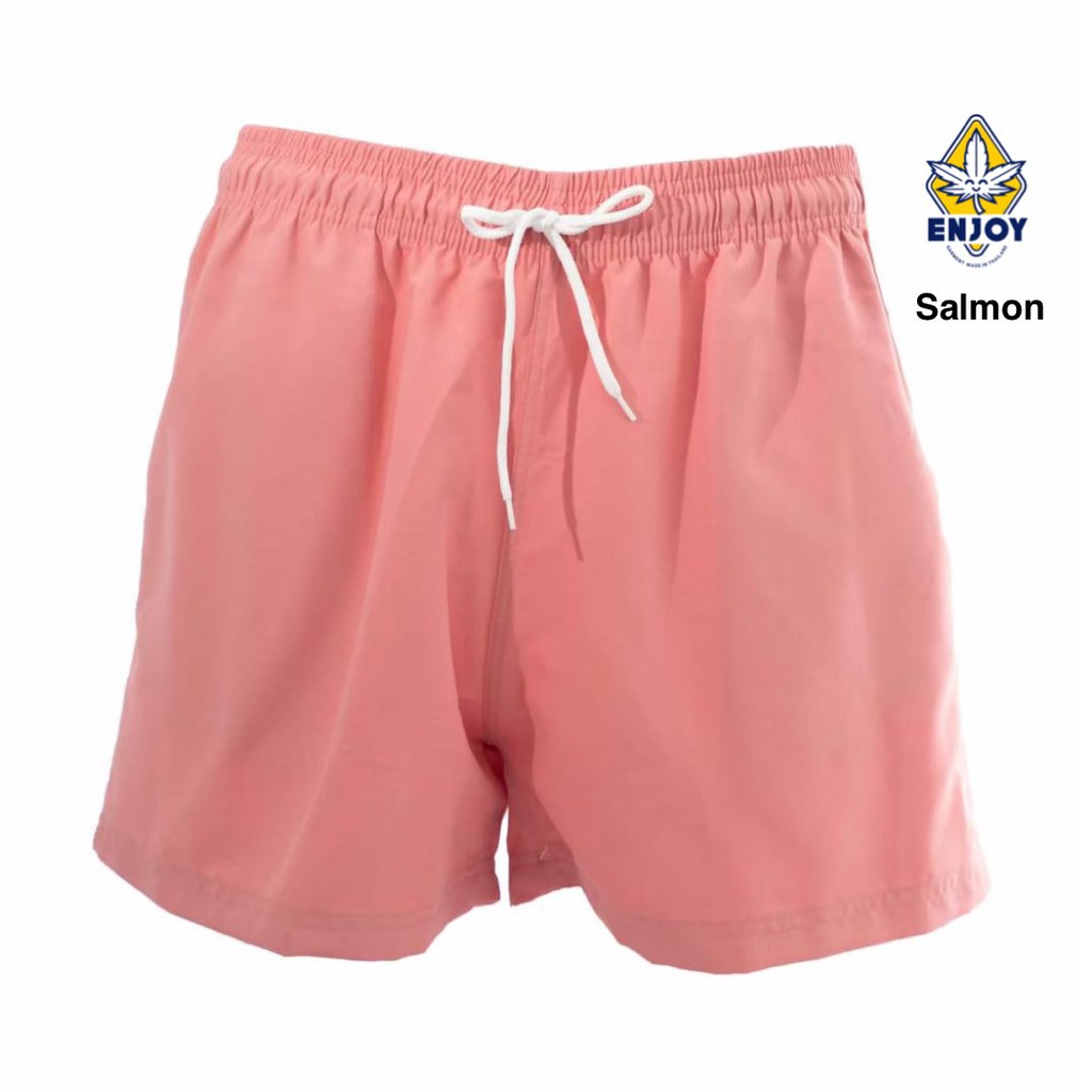 กางเกงขาสั้น (สไตล์วินเทจ No.8001) กางเกงขาสั้นลำลอง ทรงสปอร์ต สีพื้น เอวยางยืดพร้อมเชือกผูก