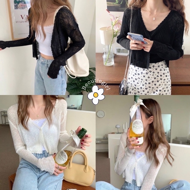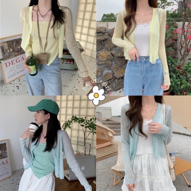 พร้อมส่ง 🌷 Candy Cardigan • คาร์ดิแกนไหมพรมผ้าบาง เสื้อคลุม เสื้อคลุมไหมพรม Becutiegirl