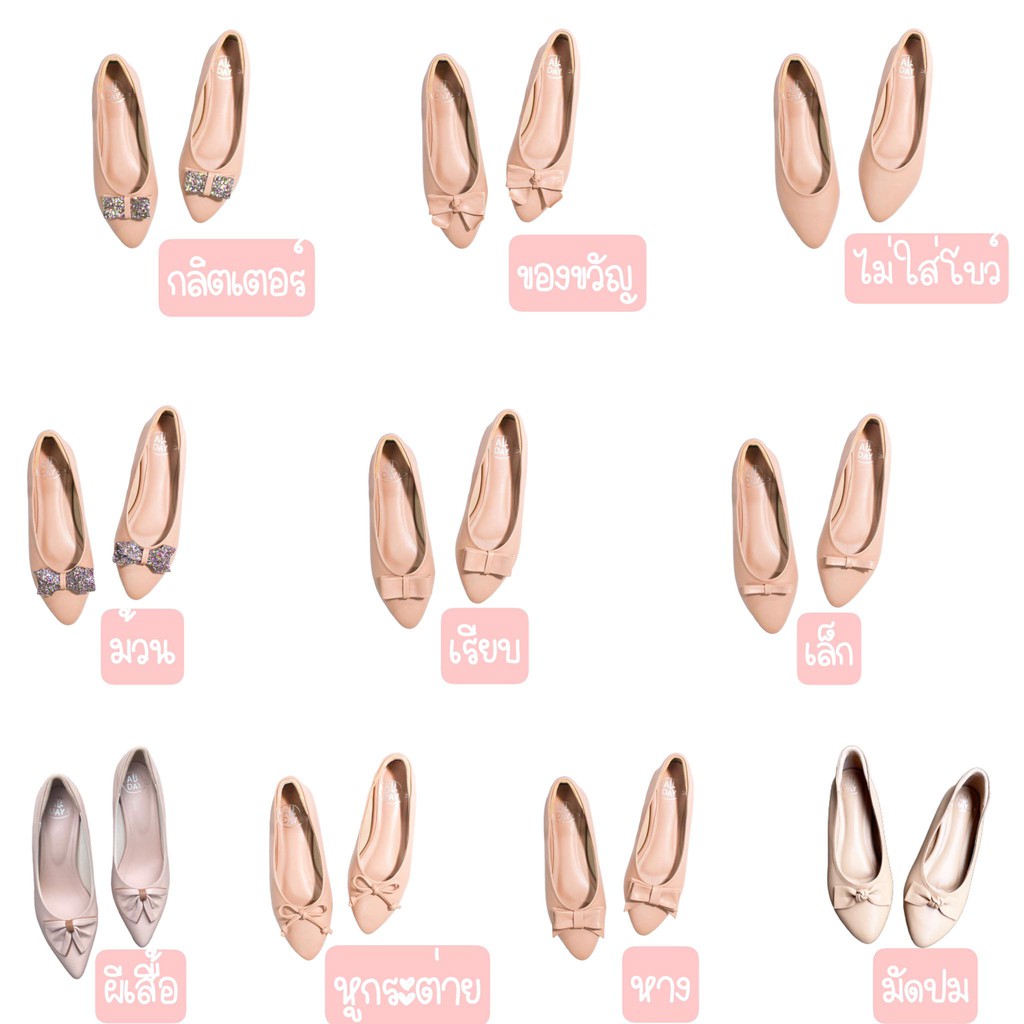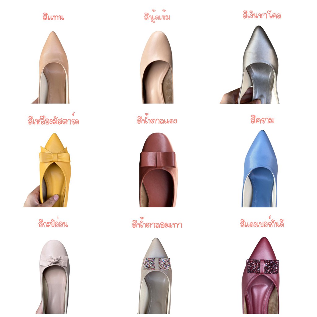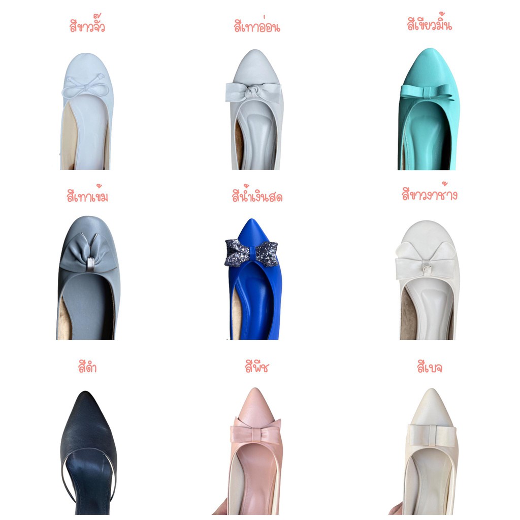 หัวแหลมส้นเตี้ย-ไม่กัดเท้า-มีกันกัดหนังแกะด้านหลัง-เท้ากว้างขยายเพิ่มได้(มี44สี/เลือกโบว์ได้10แบบ)