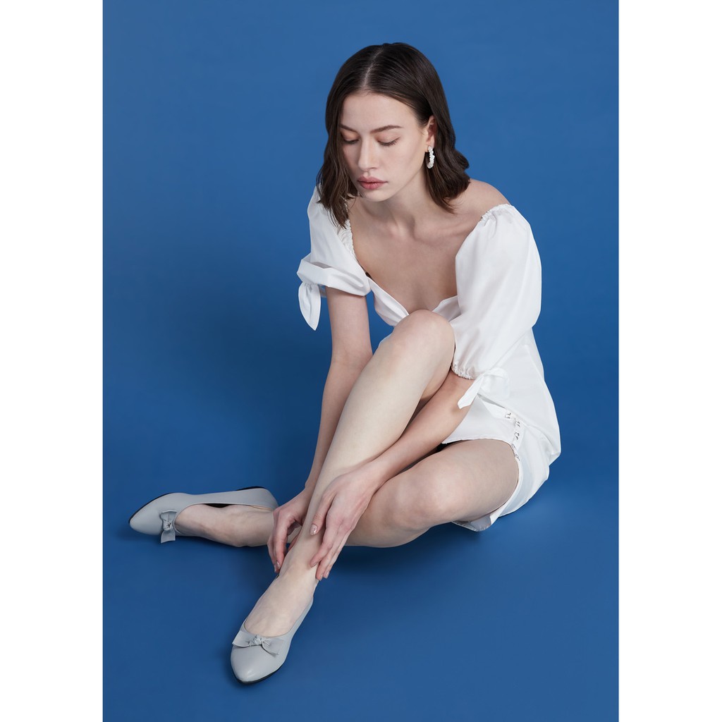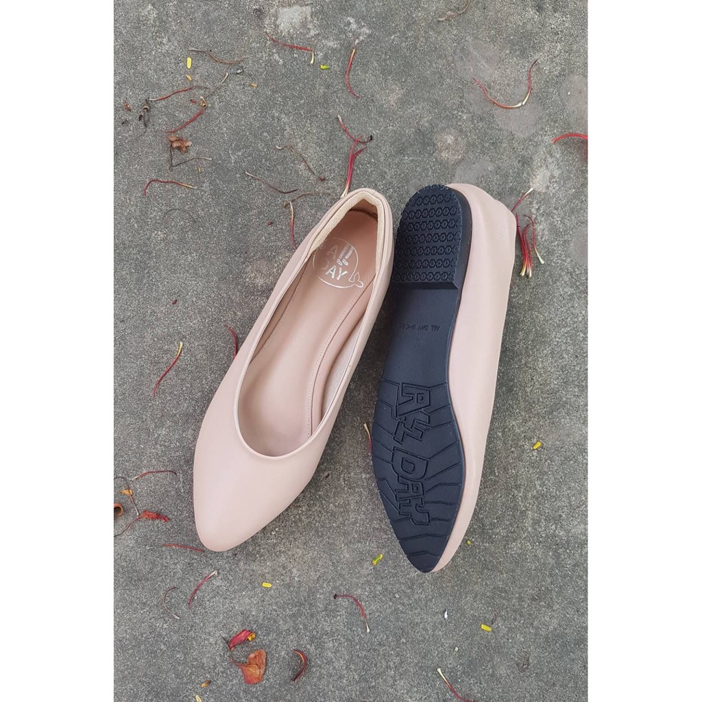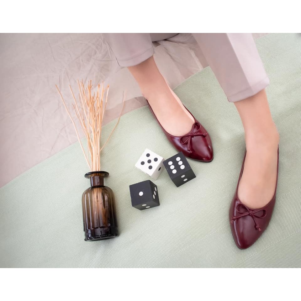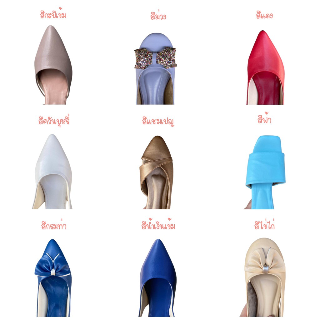 หัวแหลมส้นเตี้ย-ไม่กัดเท้า-มีกันกัดหนังแกะด้านหลัง-เท้ากว้างขยายเพิ่มได้(มี44สี/เลือกโบว์ได้10แบบ)