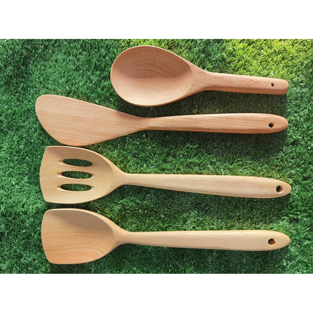 ชุดตะหลิวไม้ 3 ชิ้น+ทัพพีตักข้าว ทำจากไม้กันเกรา หรือไม้กะบก ไม่มีสารเคลือบ สามารถใช้ได้ทันที ปลอดภัย