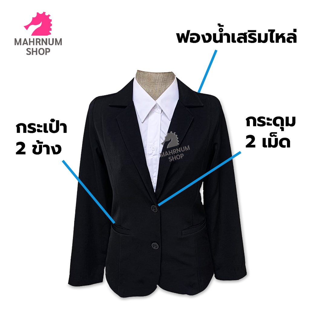 เสื้อสูท(ผู้หญิง-สีดำ) (ตัวเปล่า) ใส่ทำงานเข้ารูป ผ้านุ่มใส่สบาย และกระโปรงสีดำ(จำหน่ายแยก) *สีอาจต่างกับสีเสื้อเล็กน้อย