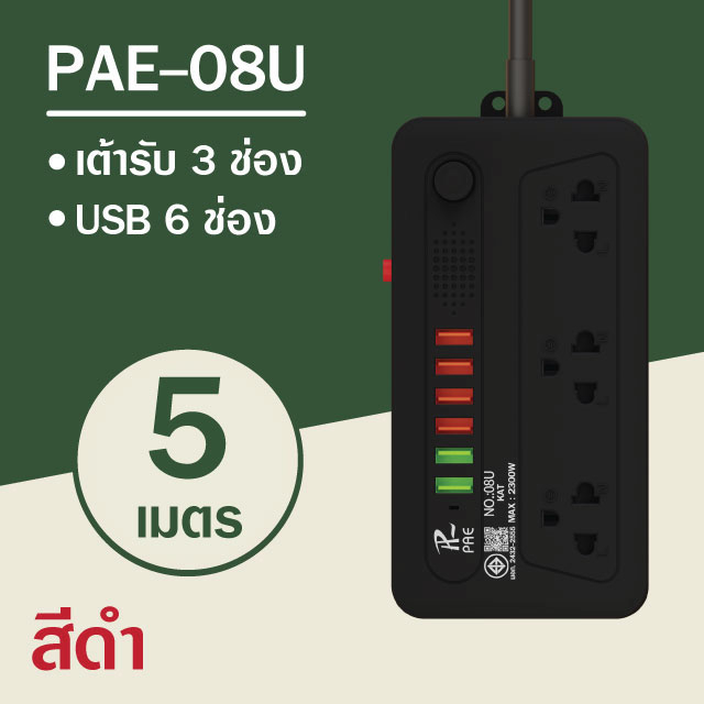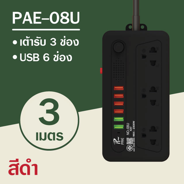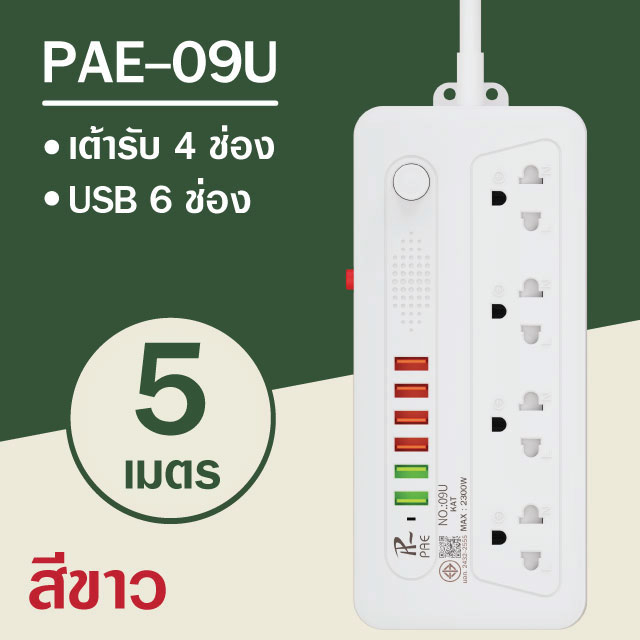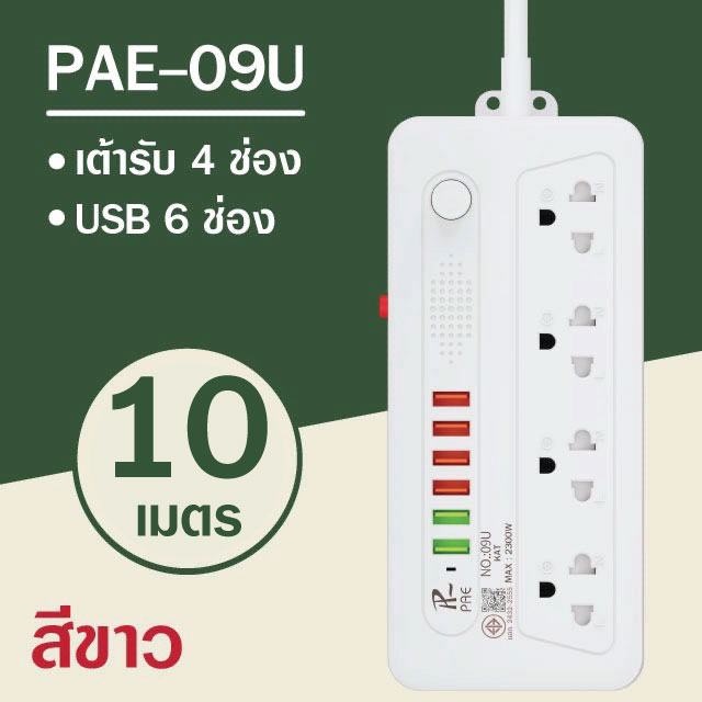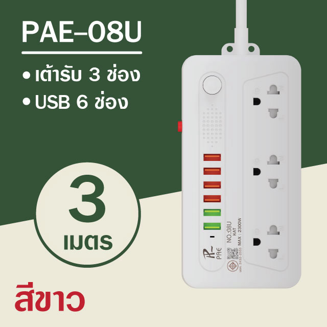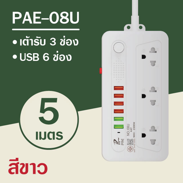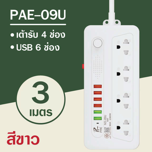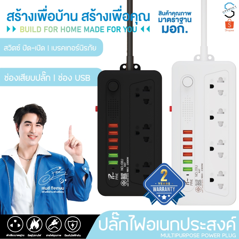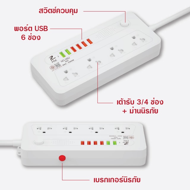 รับประกัน2ปี ปลั๊กไฟ 3ช่อง/4ช่อง มีUSB 2300W มีมอก.