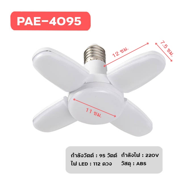 หลอดไฟ LED หลอดไฟทรงใบพัด หลอดไฟใบพัด พับเก็บได้ ปรับมุมโคมไฟได้ ประหยัดพลังงานไฟ