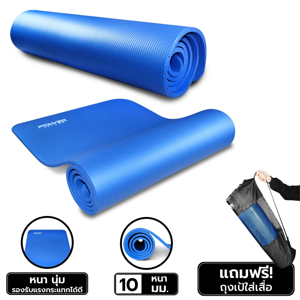 POWER REFORM เสื่อโยคะ 10 มม. Yoga Mat หนา 10 มม. ฟรี ถุงเป้ใส่เสื่อโยคะ-สีน้ำเงิน