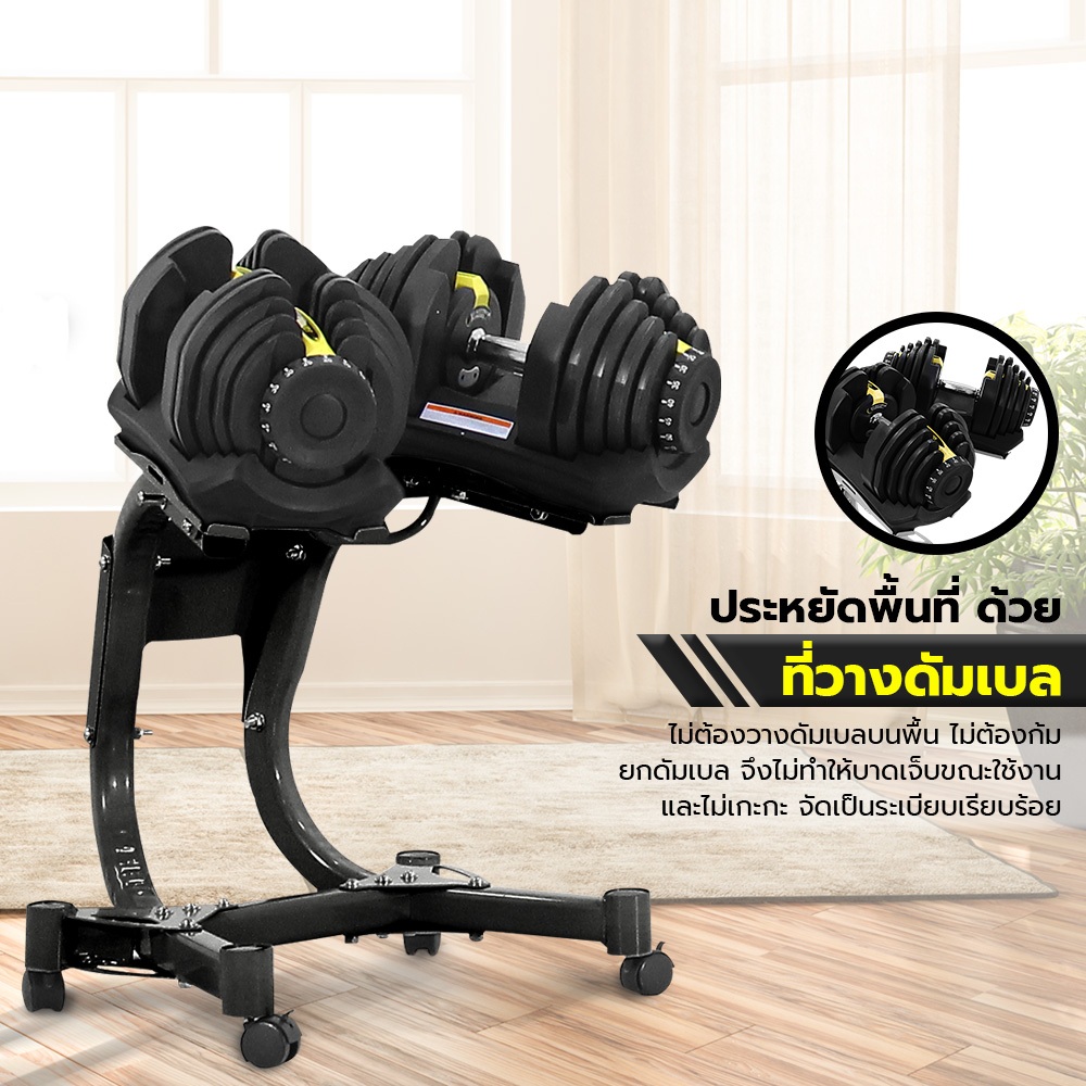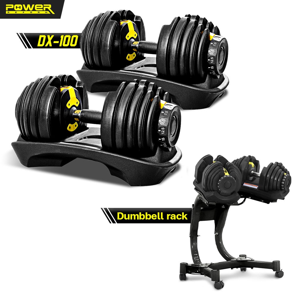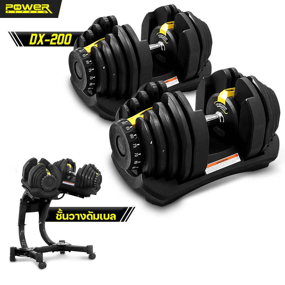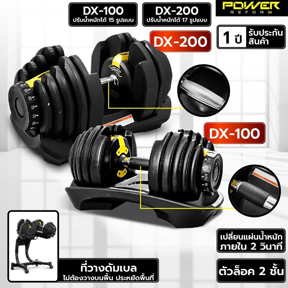 POWER REFORM ดัมเบลปรับน้ำหนัก รุ่น DX-100 / DX-200 Adjustable Dumbbell น้ำหนักสูงสุด 41 กก. พร้อมชั้นวางดัมเบล(สีดำ)