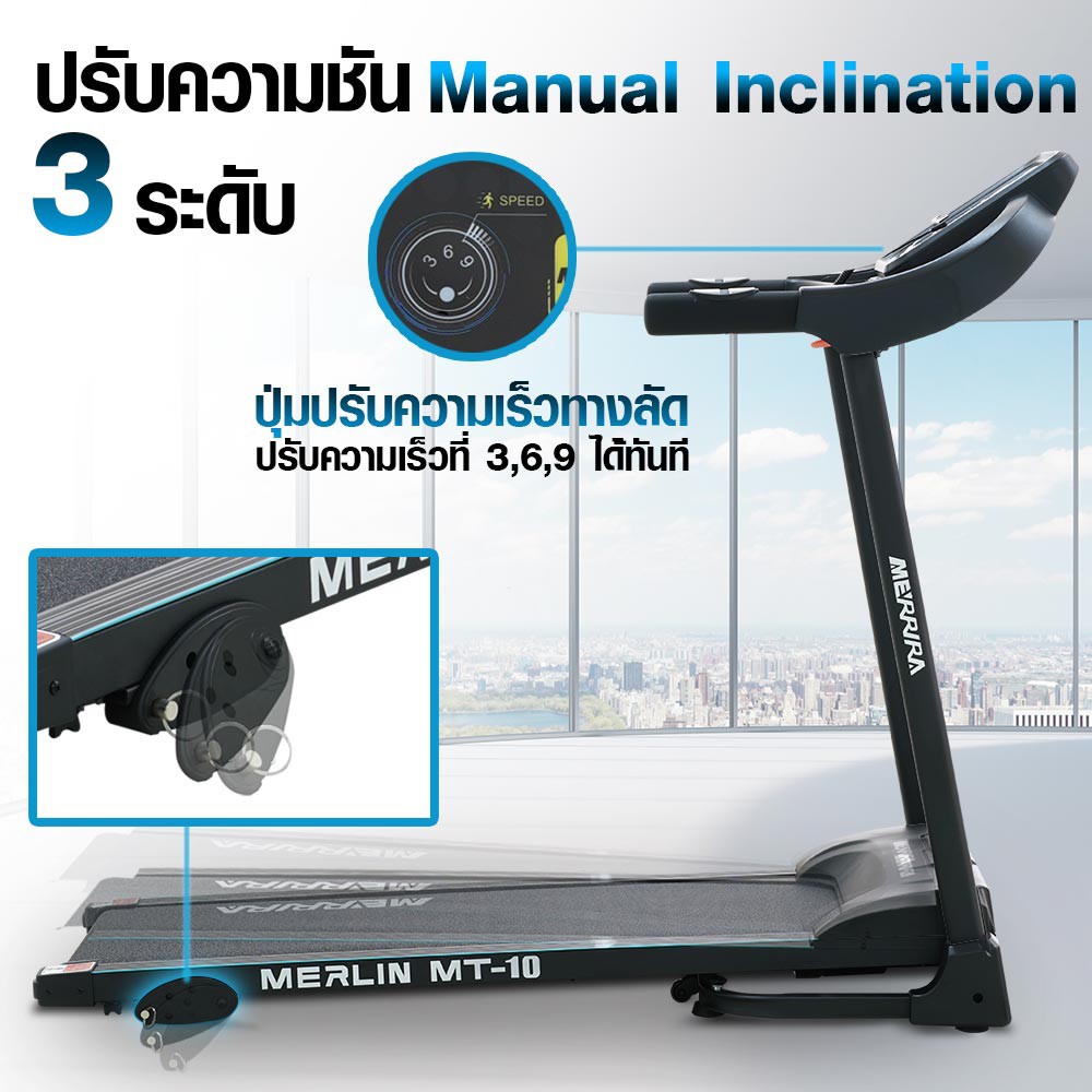 MERRIRA ลู่วิ่งไฟฟ้า 1-2 แรงม้า รุ่น MT-10/MT-15 /MT-20 /MT-30 /MT-40 ต่อ ZWIFT ได้ ประหยัดพื้นที่ใช้งาน