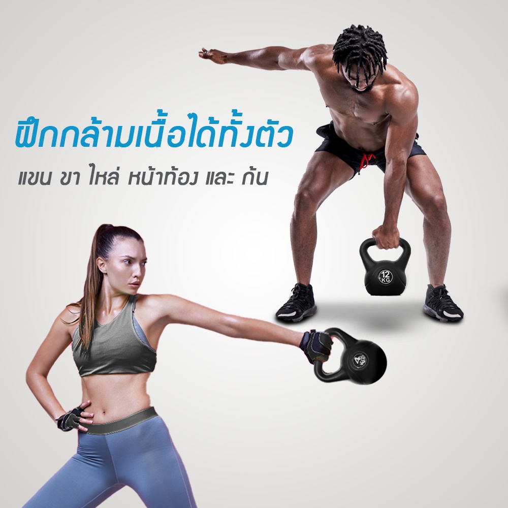 Merrira เคตเทิลเบล Kettlebell ลูกตุ้มยกน้ำหนัก สีดำ (แบบใหม่) น้ำหนัก 2 กก. - 14 กก. จับถนัดมือ