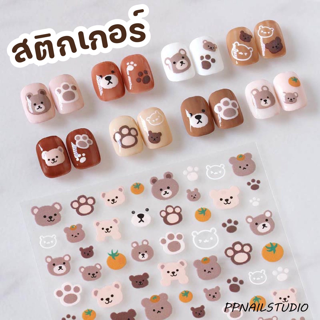 สติกเกอร์หมี อุปกรณ์ตกแต่งเล็บเจล เล็บเจล