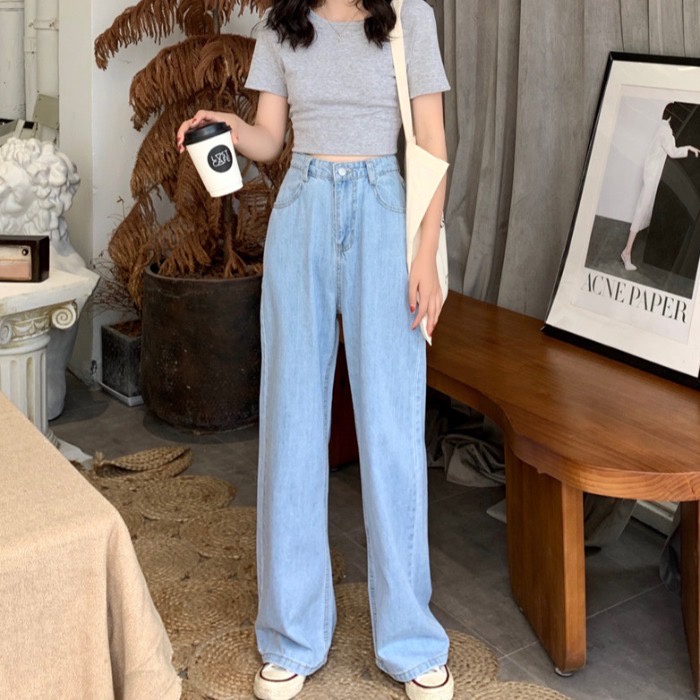 💥YH#528💥มี ไซซ์ S-3XL💥กางเกงยีนส์ เอวสูง สไตล์เกาหลี แนววินเทจ เท้ากว้าง กางเกงยีนส์ขายาว สวยๆเก๋ๆ