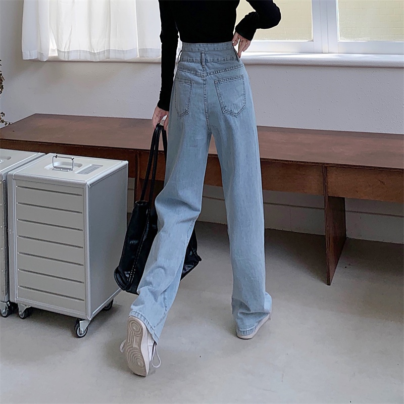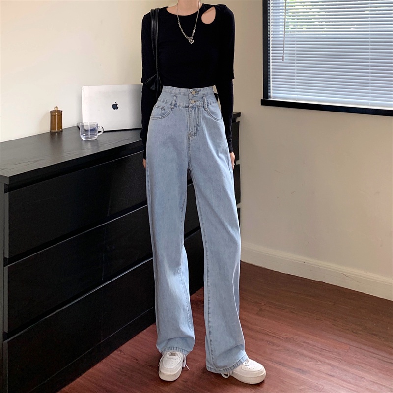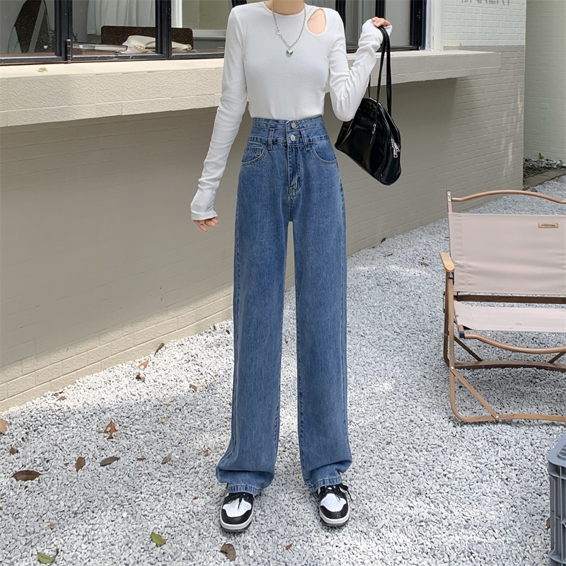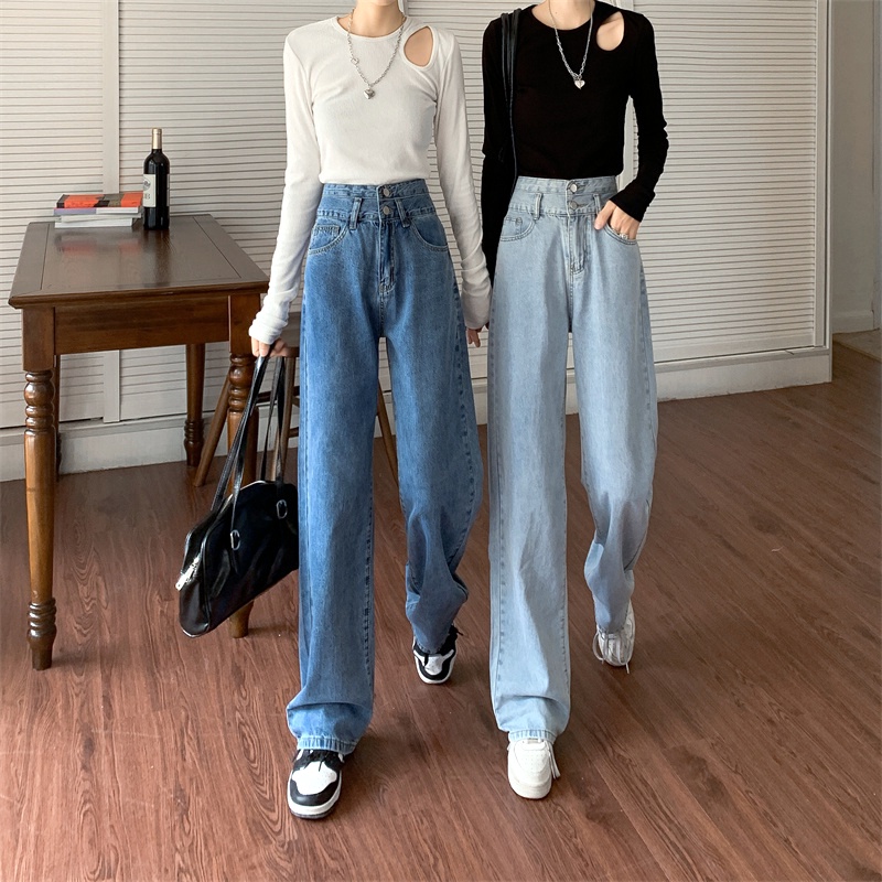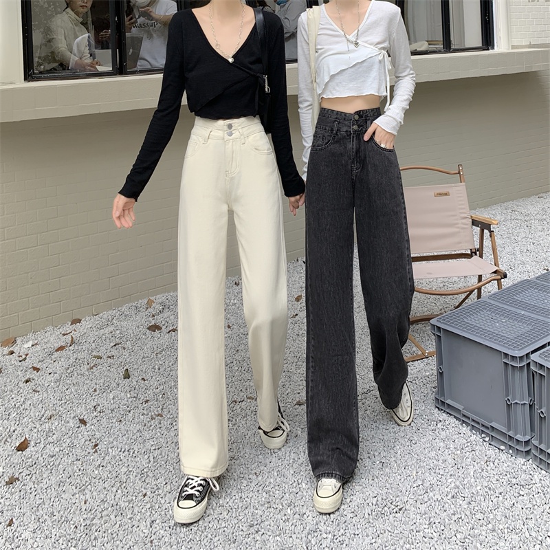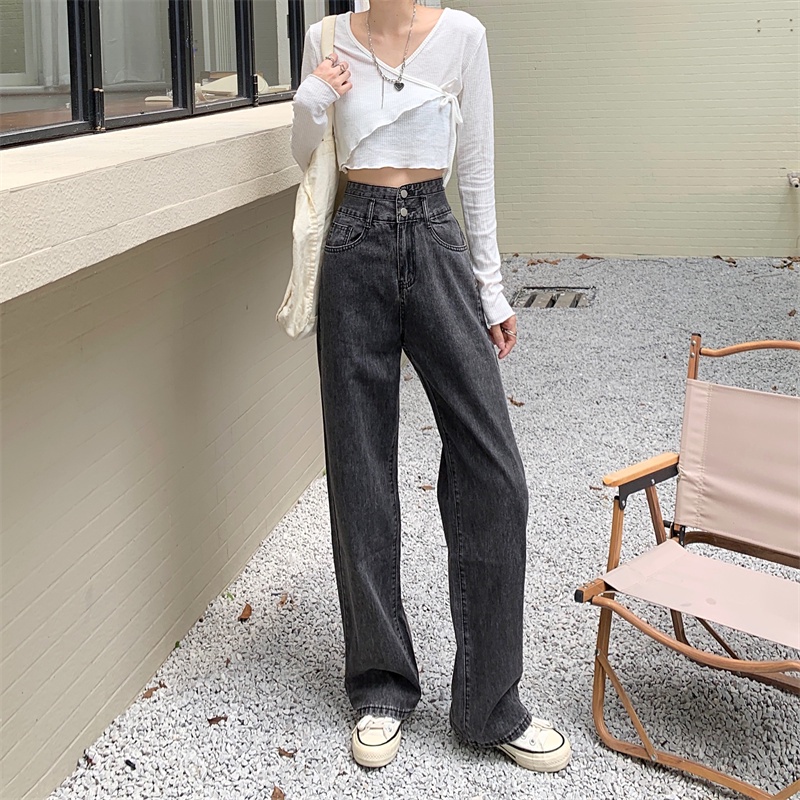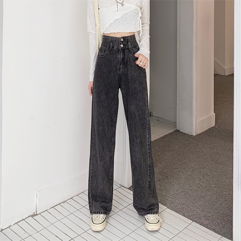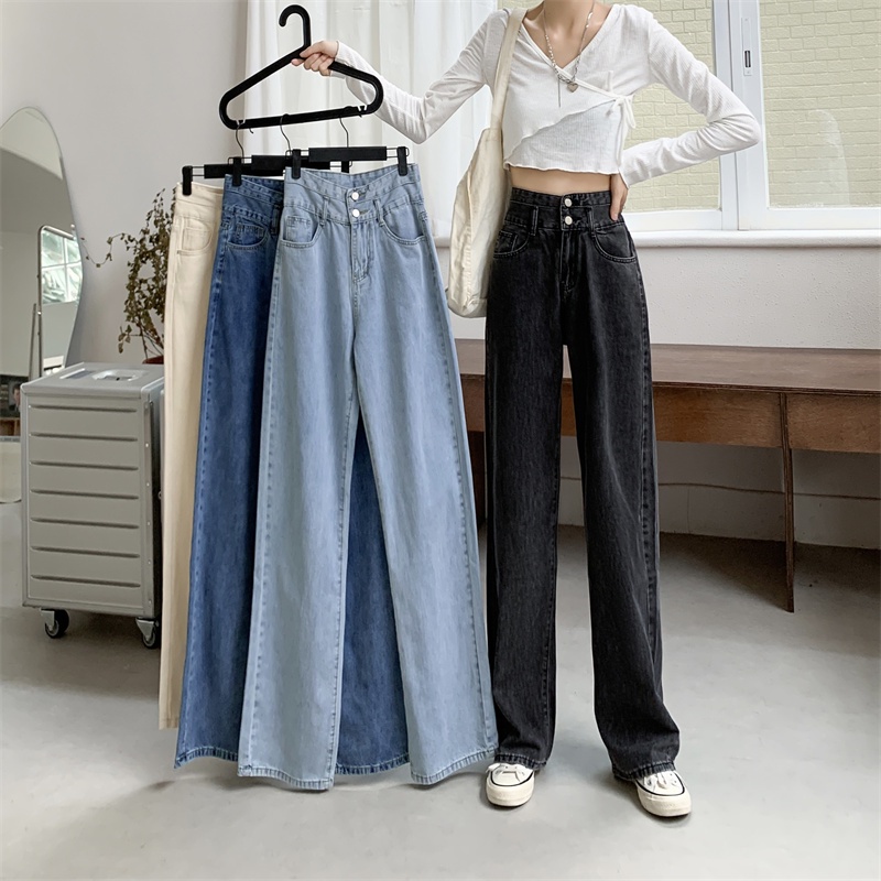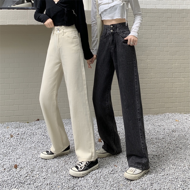 💥YH#9312💥มีไซซ์ S-3XL💥กางเกงยีนส์ เอวสูง สไตล์เกาหลี ตกแต่งกระดุมด้านหน้า เท้ากว้าง กางเกงยีนส์ขายาว สวยๆเก๋ๆ