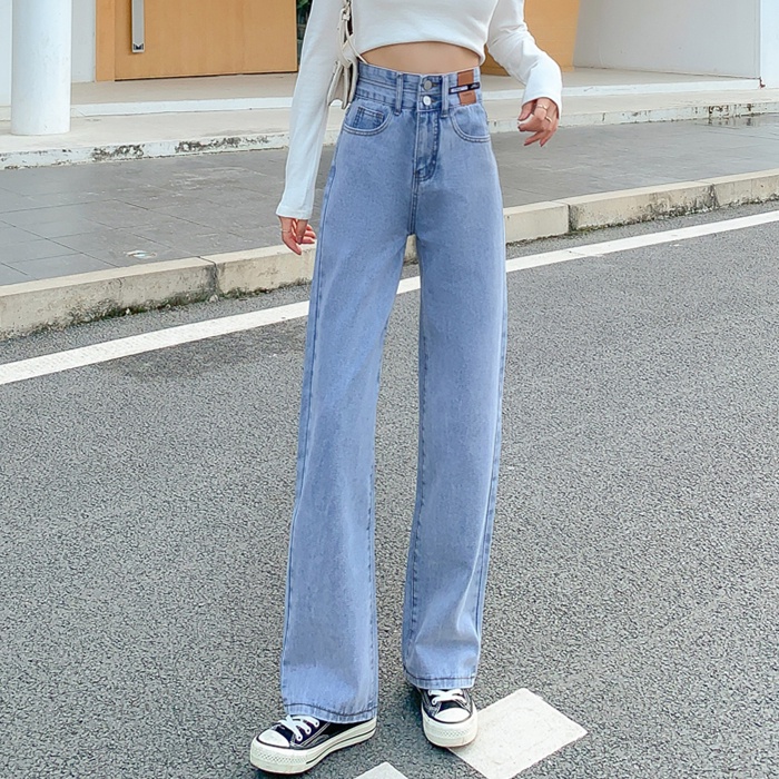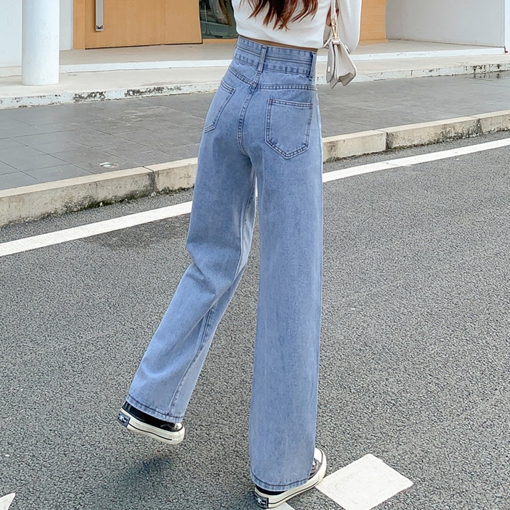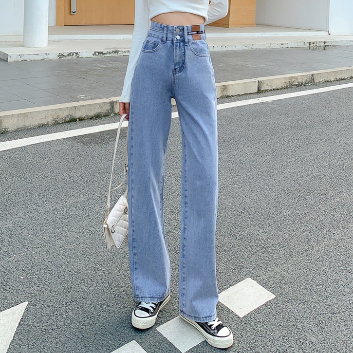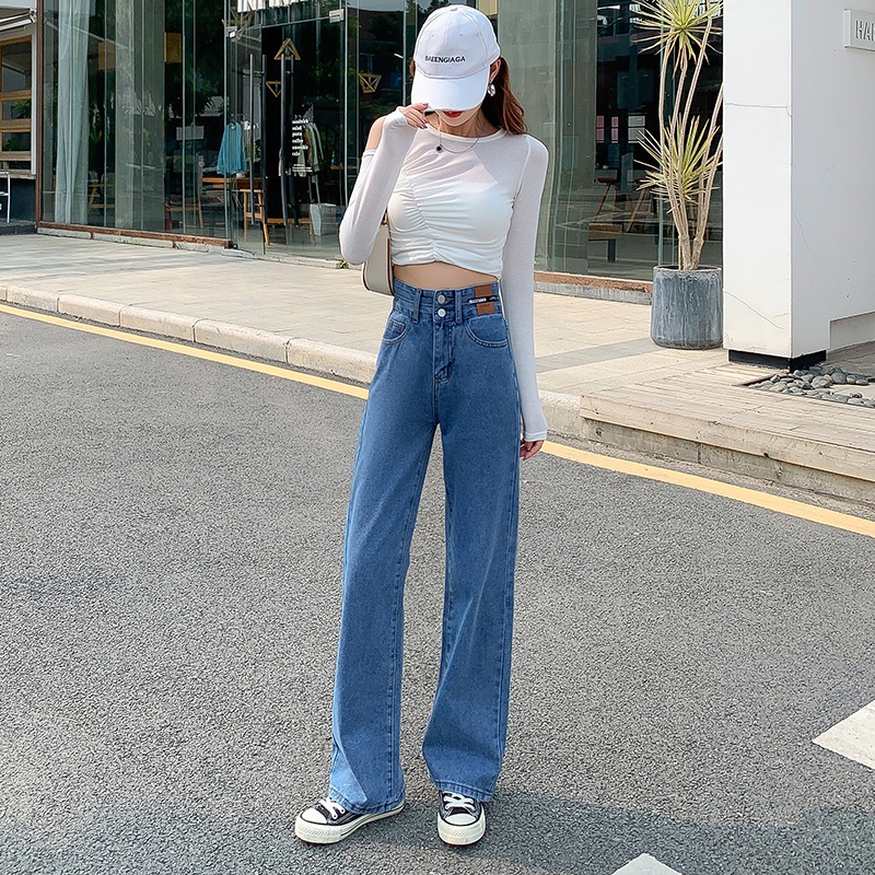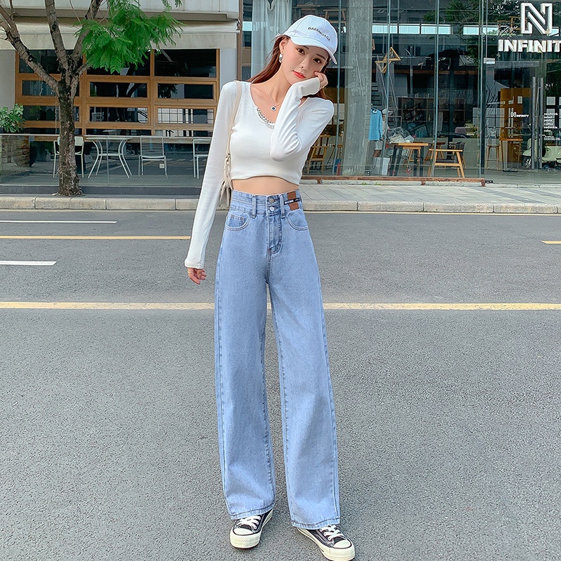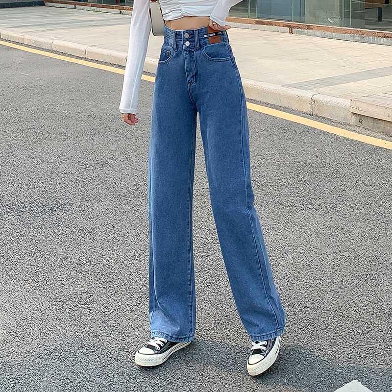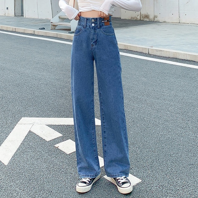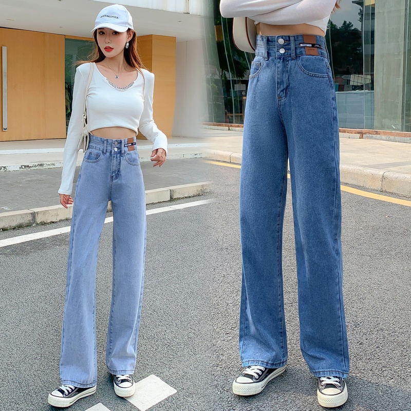 💥YH#9411💥มี ไซซ์ S-3XL💥กางเกงยีนส์ เอวสูง สไตล์เกาหลี ตกแต่งกระดุมด้านหน้า เท้ากว้าง กางเกงยีนส์ขายาว สวยๆเก๋ๆ