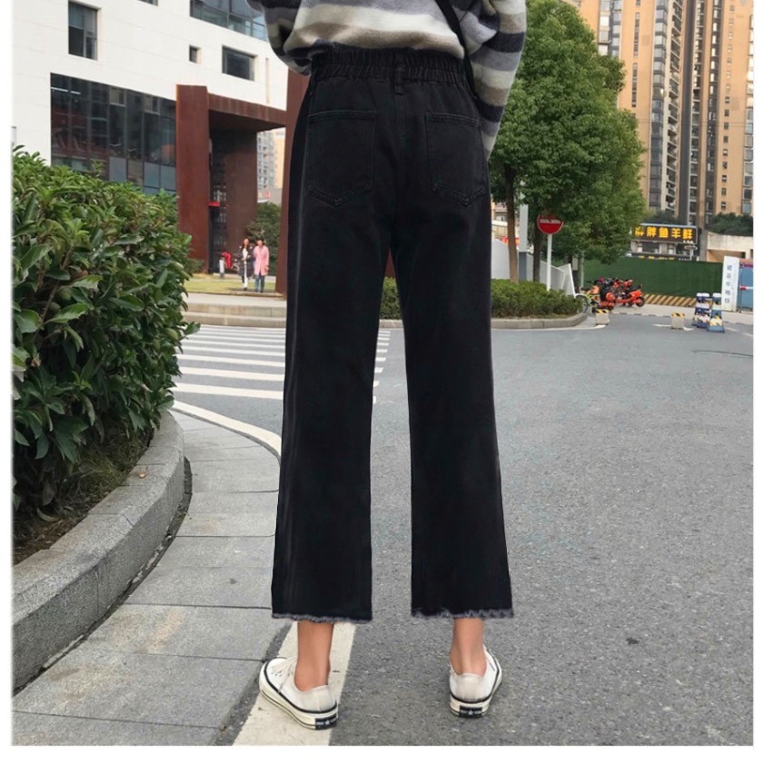 💥YH#8617💥มีไซส์ S-5XL💥กางเกงยีนส์ ขายาว เอวสูง เอวยางยืด ขาบาน ทรงกระบอกใหญ่ ตกแต่งปลายกางเกงด้วยพู่ระบายเก๋ๆ