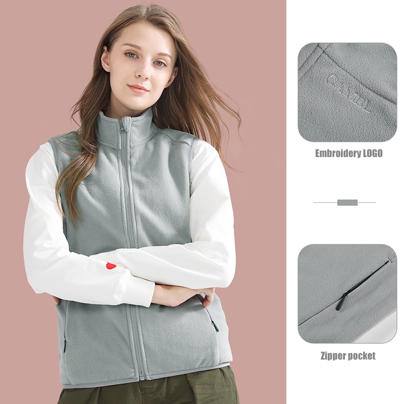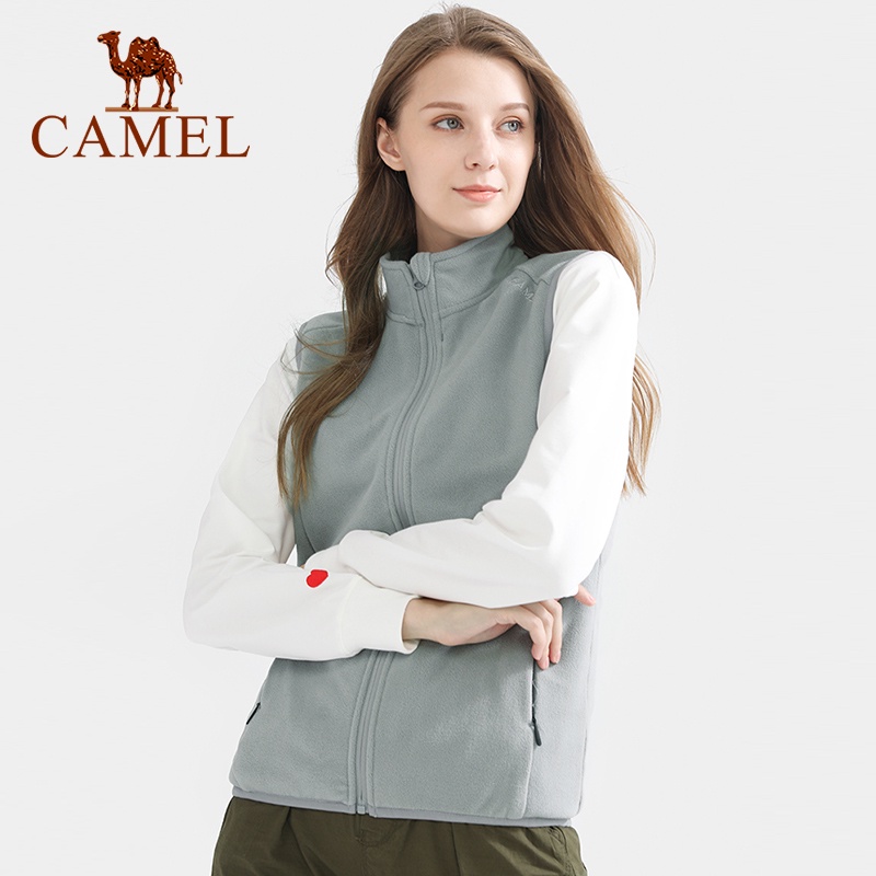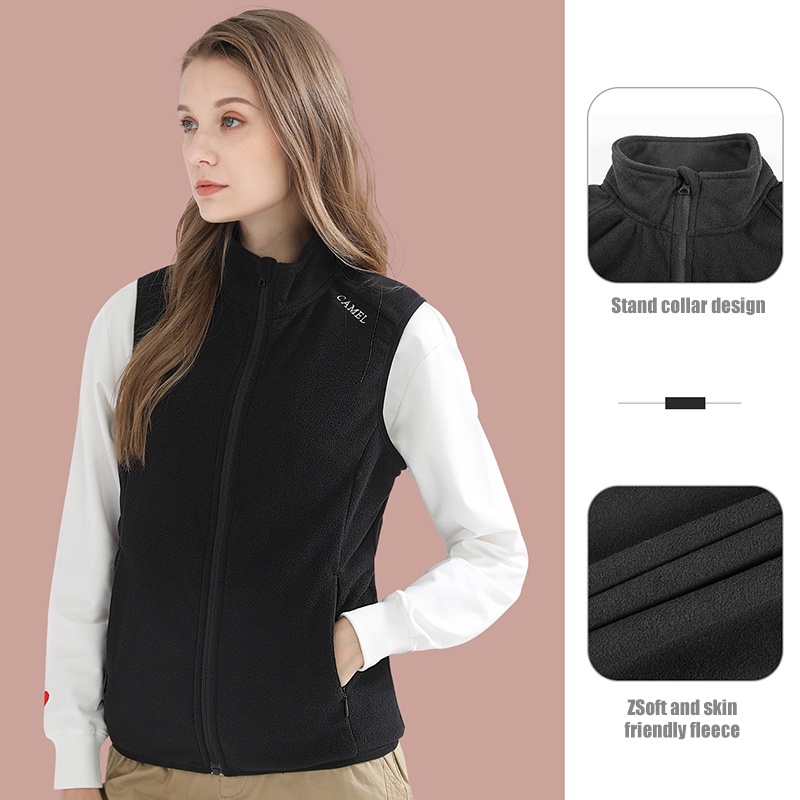 Camel เสื้อแจ็กเก็ต ผ้าฟลีซ แขนกุด สีพื้น สําหรับผู้หญิง
